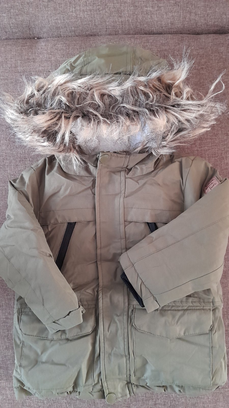 Zimná parka vo vynikajúcom stave, takmer nenosená. Kožušinka na kapucni sa dá odopnúť. Veľkosť zodpovedá ročnému dieťaťu.