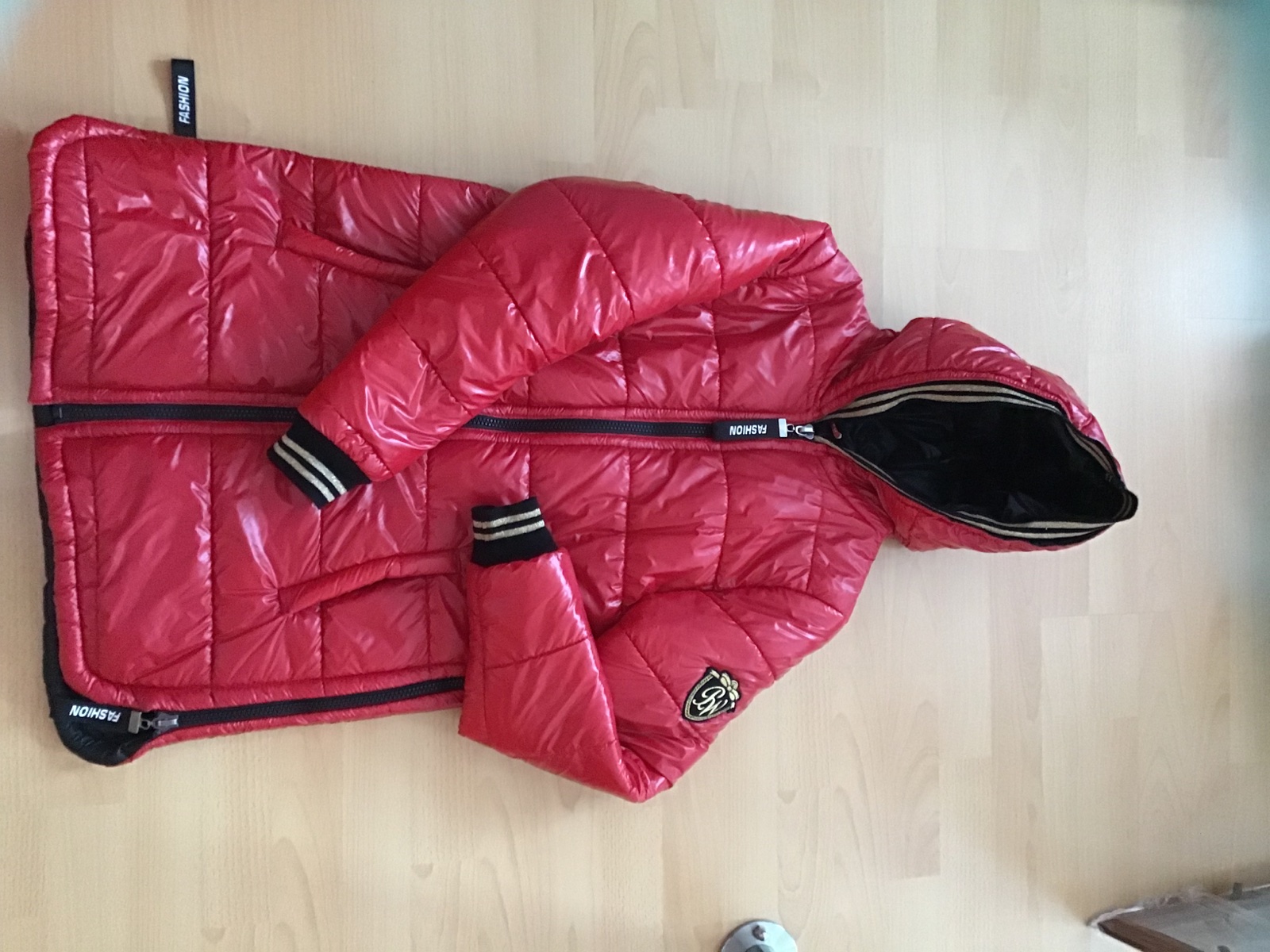 Predám zimnú bundu lesklej červenej farby. Po oboch stranách bokov sú rozopínateľné zipsy. Dĺžka 80 cm, rukáv 62 cm, plecia 43 cm, prsia 52 cm. Velkost S/M. Bez akejkoľvek vady. Možné aj osobný odber Lipt. Mikuláš. Cena bez dopravy.