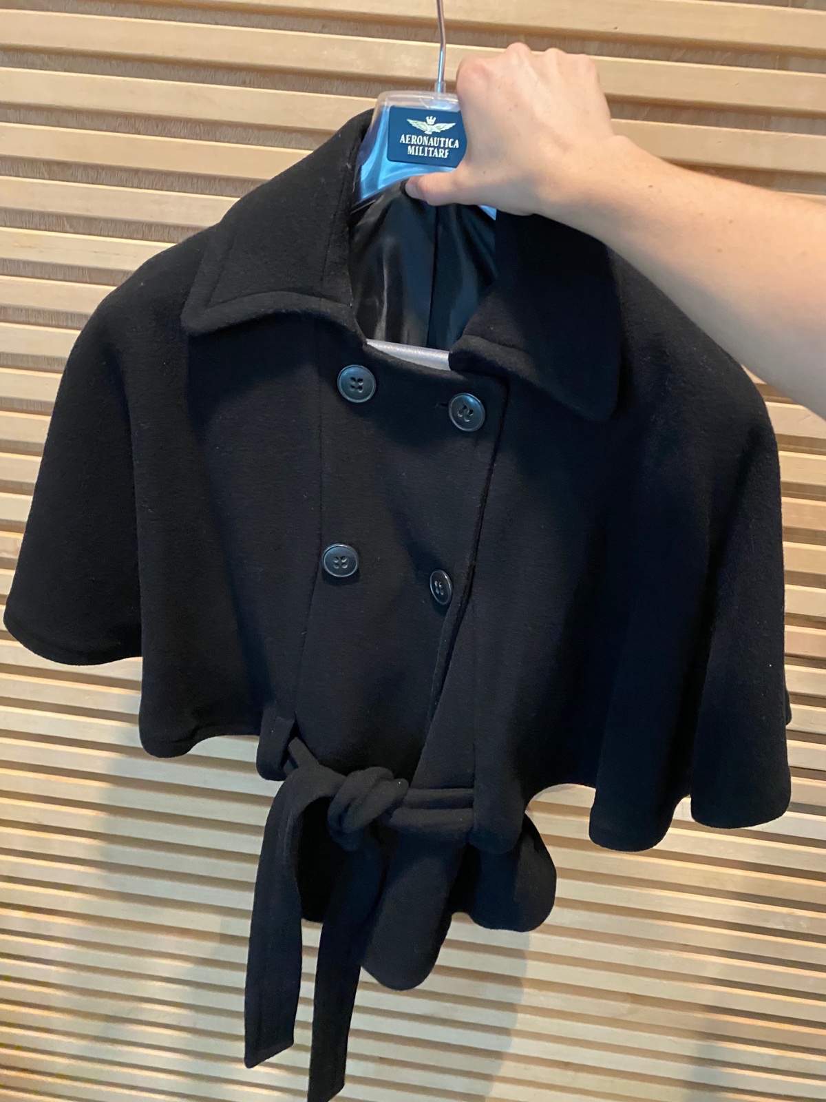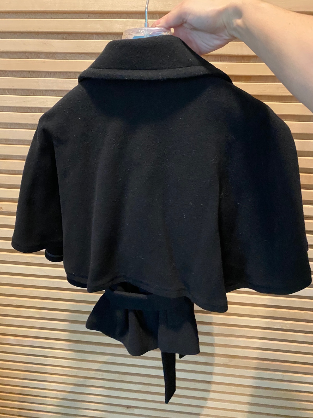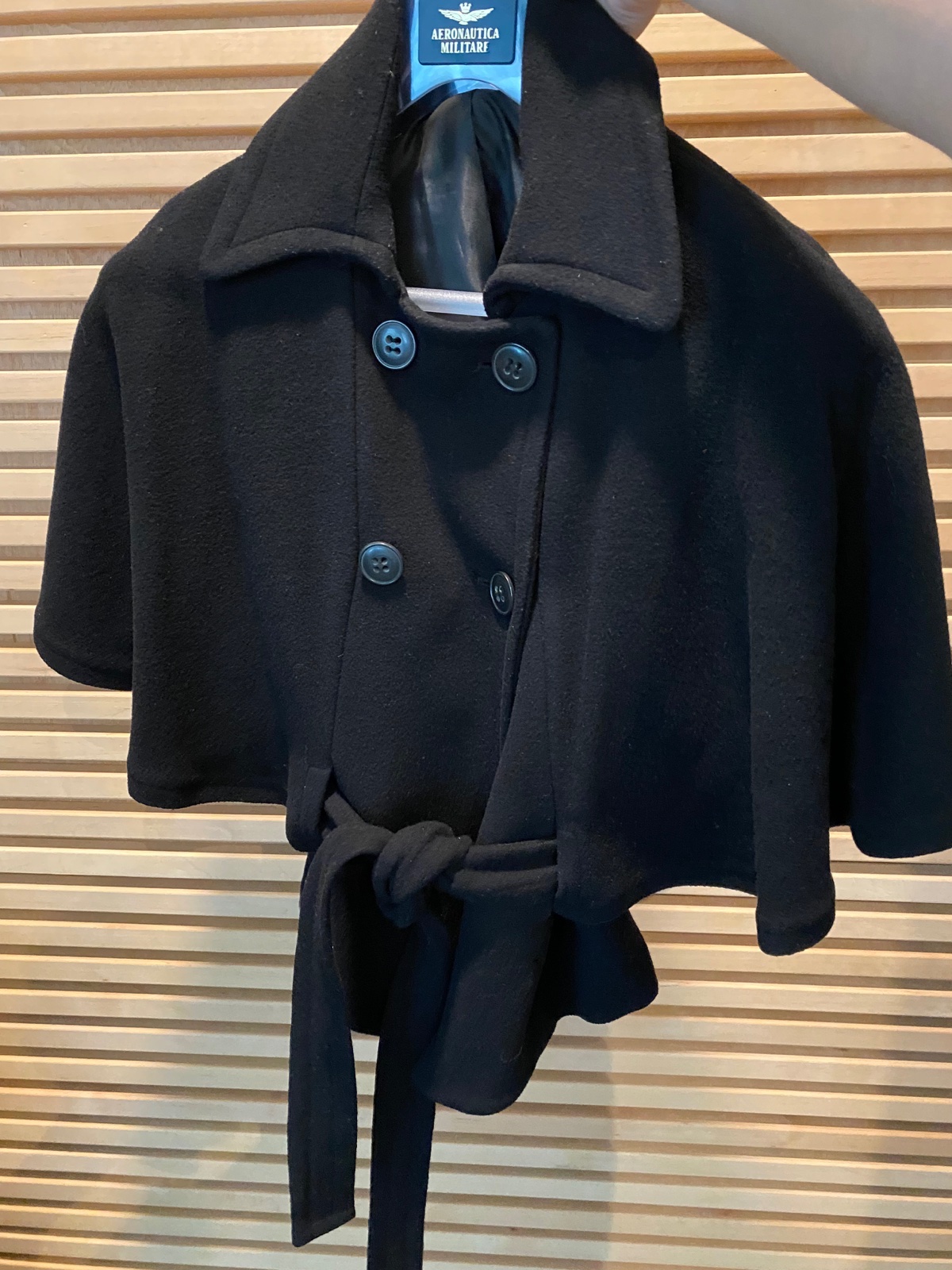 Predám krátky elegantný kabátik na štýl ponča, zapínanie gombíky + v páse zaväzovanie.