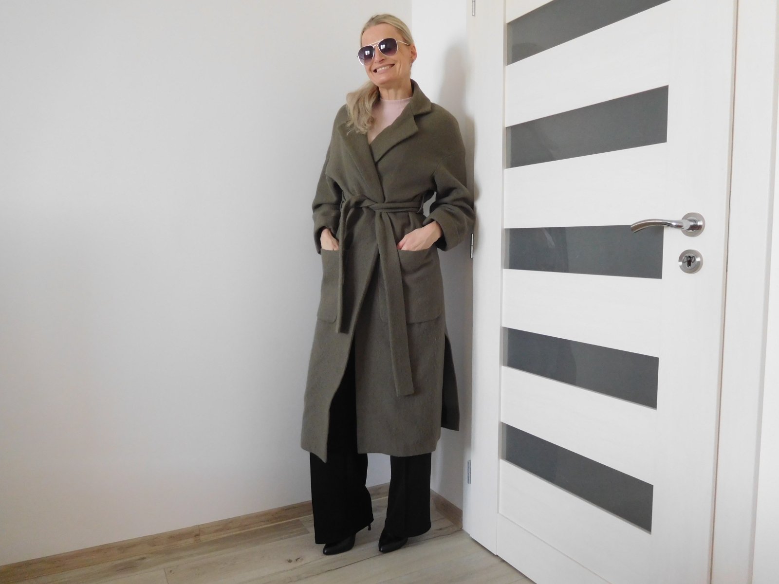 Kabát je v TOP TOP stave, veľmi príjemný na nosenie, veľmi dobre sedí, kabát má rovný zadný diel -na prednom diely sú nakladané vrecká, plecia sú mierne spustené-pokračujú cez dlžku rukáva s manžetkou. Kabát je z vlnenej zmesi-zapínanie na opasok.