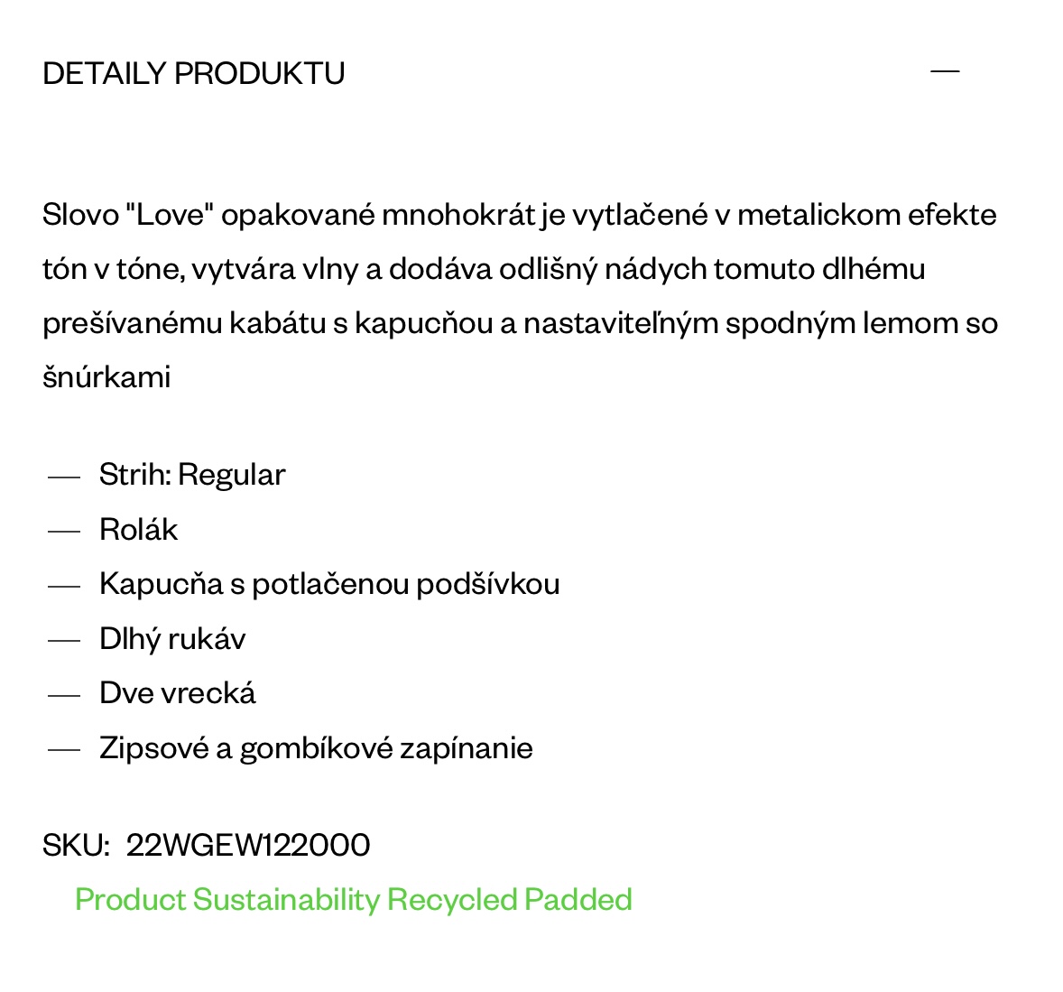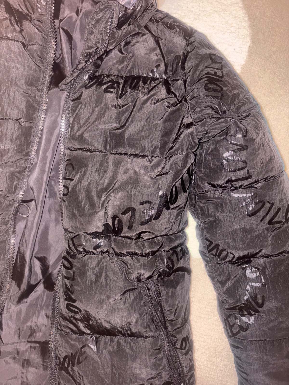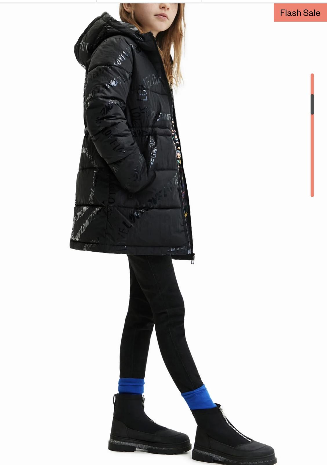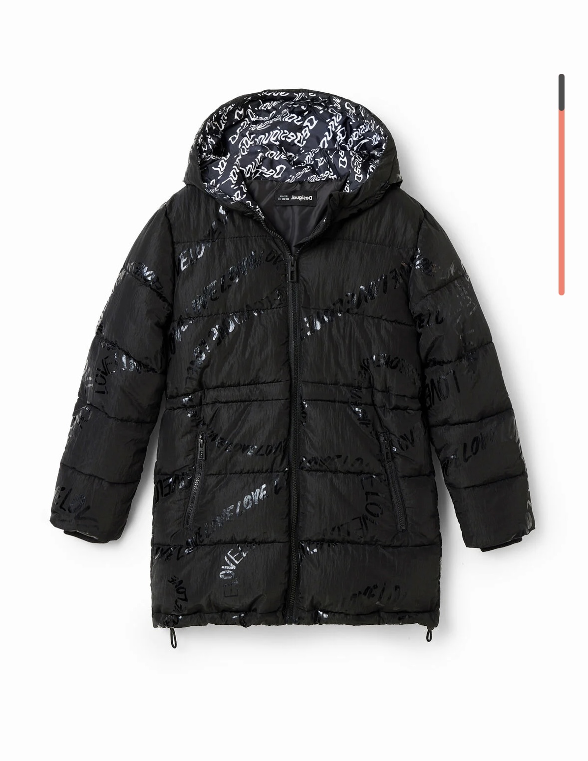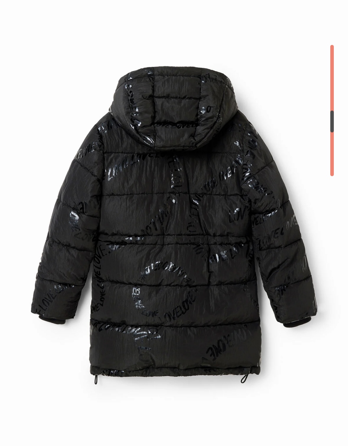 Dlhý prešívaný kabát Desigual s textom v.122/128