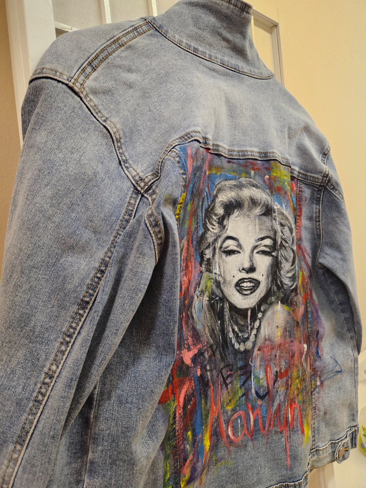 Ponukam malovanu riflovku s portrétom Marylin Monroe...stav bundy...bez jednej chyby.
