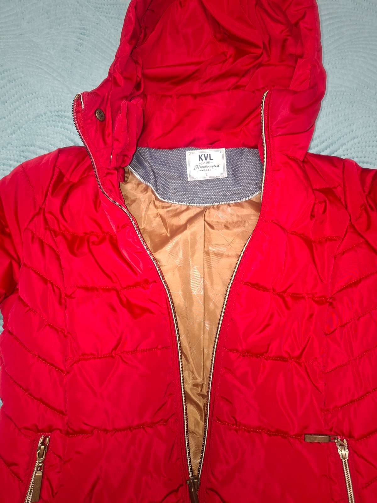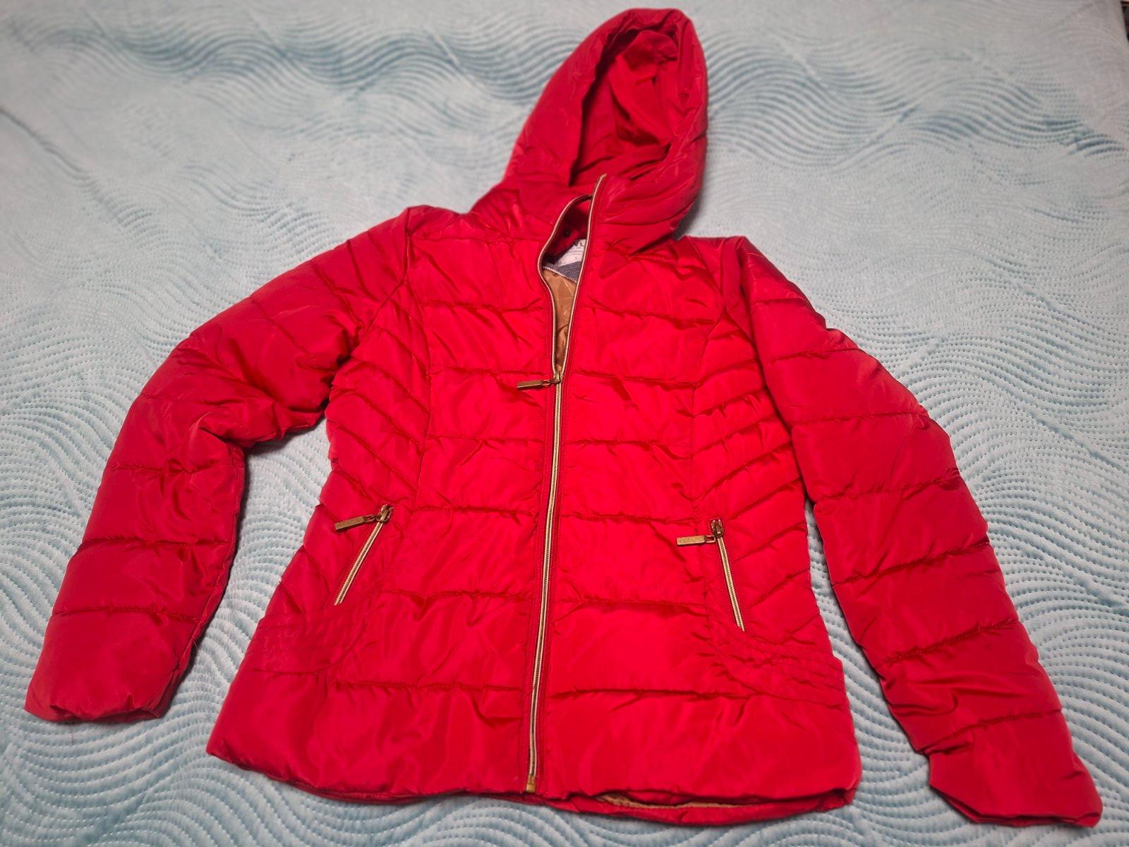 Bunda je v super stave bez poškodení pár krát oblečená, pekná červená farba. Na foto je farba trošku skreslená je trochu tmavšia PC50