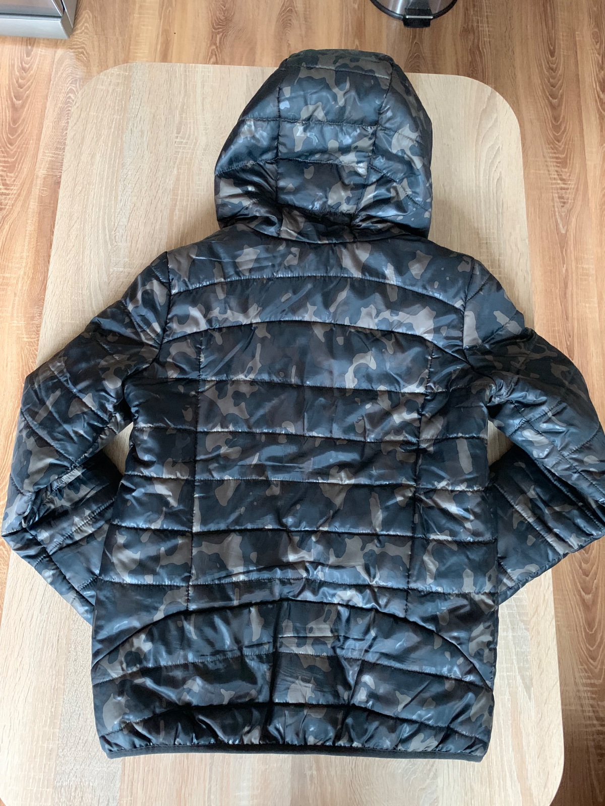 Veľmi pekná prechodná bunda. V super stave. Kapucňa sa dá schovať do goliera.