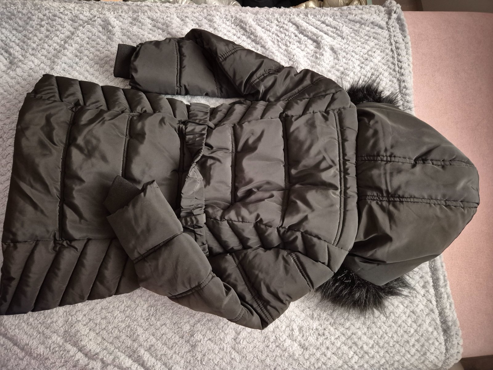 Ponúkam teplú vetrovku na zimu, bez poškodenia, s opaskom, kapucňou. Vo vnútri oteplena s kožušínkou. Dĺžka 58cm,rukav 51cm.Cena bola 35€.