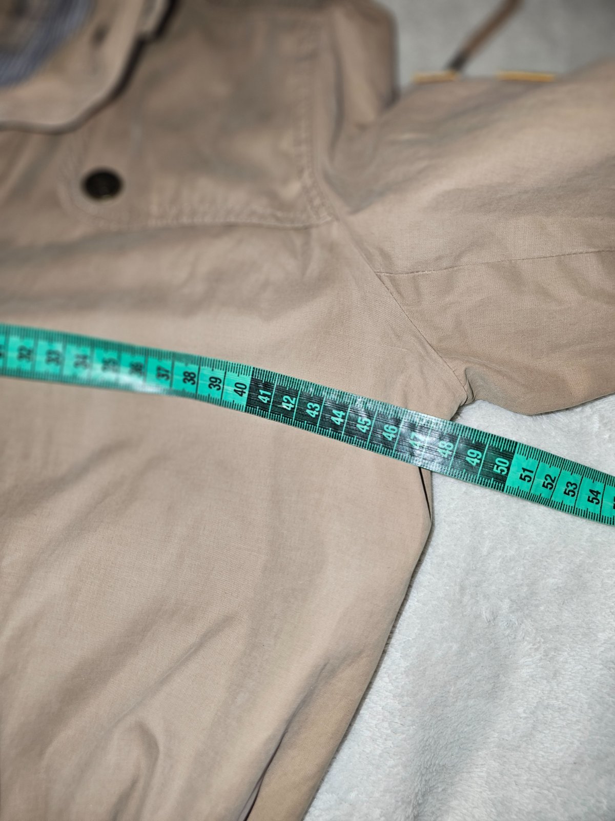 Tenka vetrovka kupovaba v Izraeli, zial nema kapucnu.vynikajuci stav ziadne poskodenia.veljost pisana xl ale urcite mensia.sirka cez prsia 54, dlzka 72, dlzka rukav 64, rukav sa da vyhnut potom je ...