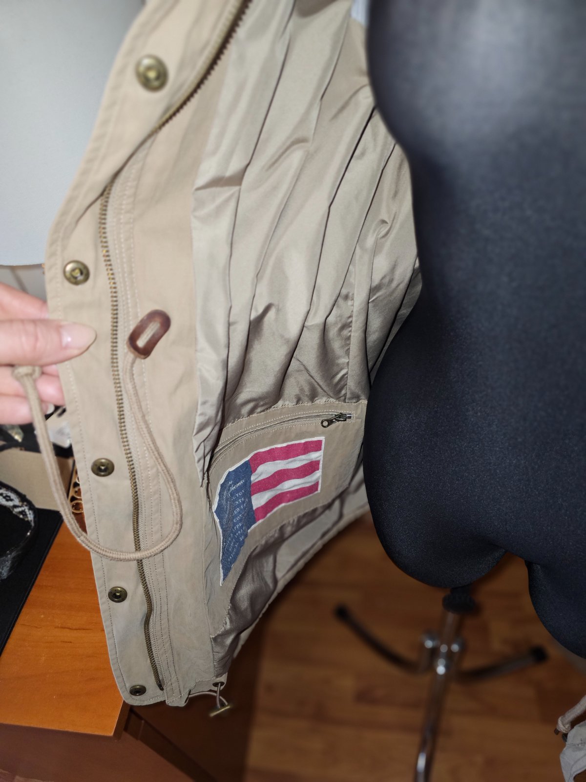 Prechodná khaki bundička s odnímateľnou kapucňou
