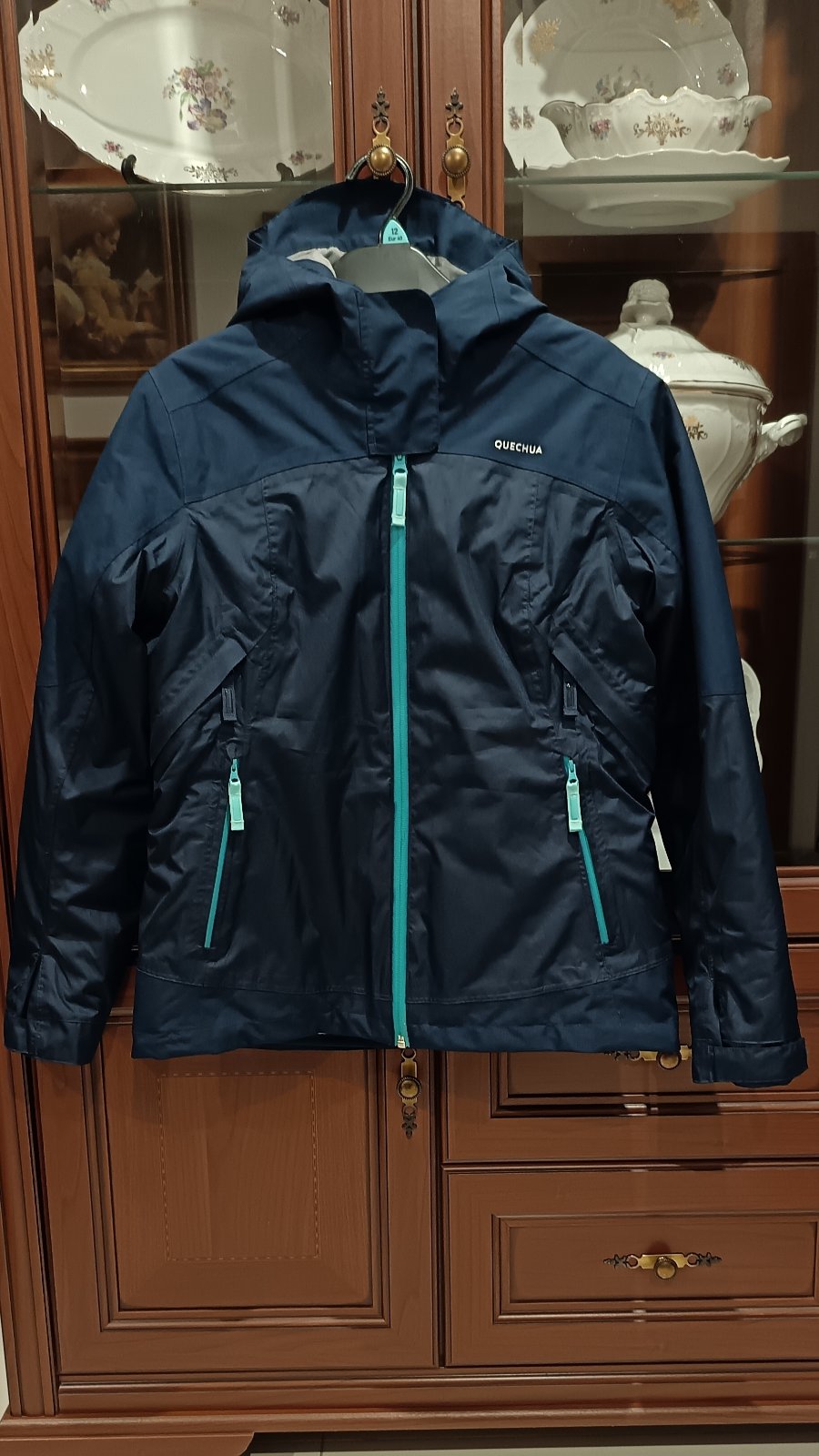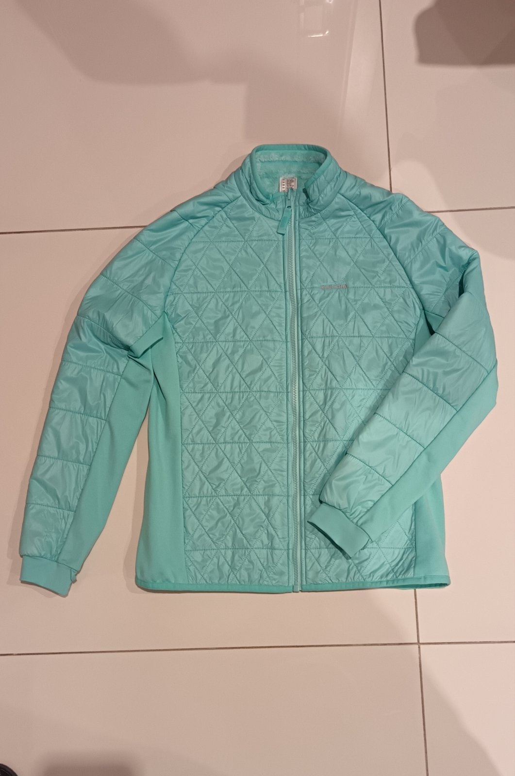 Úžasne prepracovaná, vysoko kvalitná vetrovka Francúzskej značky, vode a vetru odolná / vodný stĺpec nie je uvedený /, úprava spodku, rukávov a kapucne, vysoké zapínanie, odvetrávanie, namáhané časti - plecia a spodok spevnené ešte jedným kvalitným materiálom, reflexné logo, vetrovka je sama oteplená + ešte na veľké zimu sa vkladá na zipsy fantastická, hebunká, teplá mentolová mikina, ktorá sa dá nosiť aj samostatne a je vatovaná, čiže hybridná, veľkosť uvedená ako dvojčíslo 152/158 ale je väčšia kľudne 164 cm aj dámske S, vetrovka bola oblečená 2x do školy, čiže stav novej, nepratá a nečistená v čistiarni.