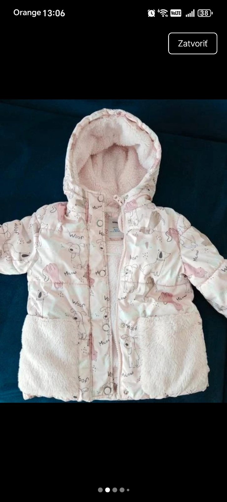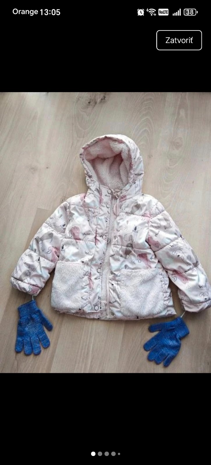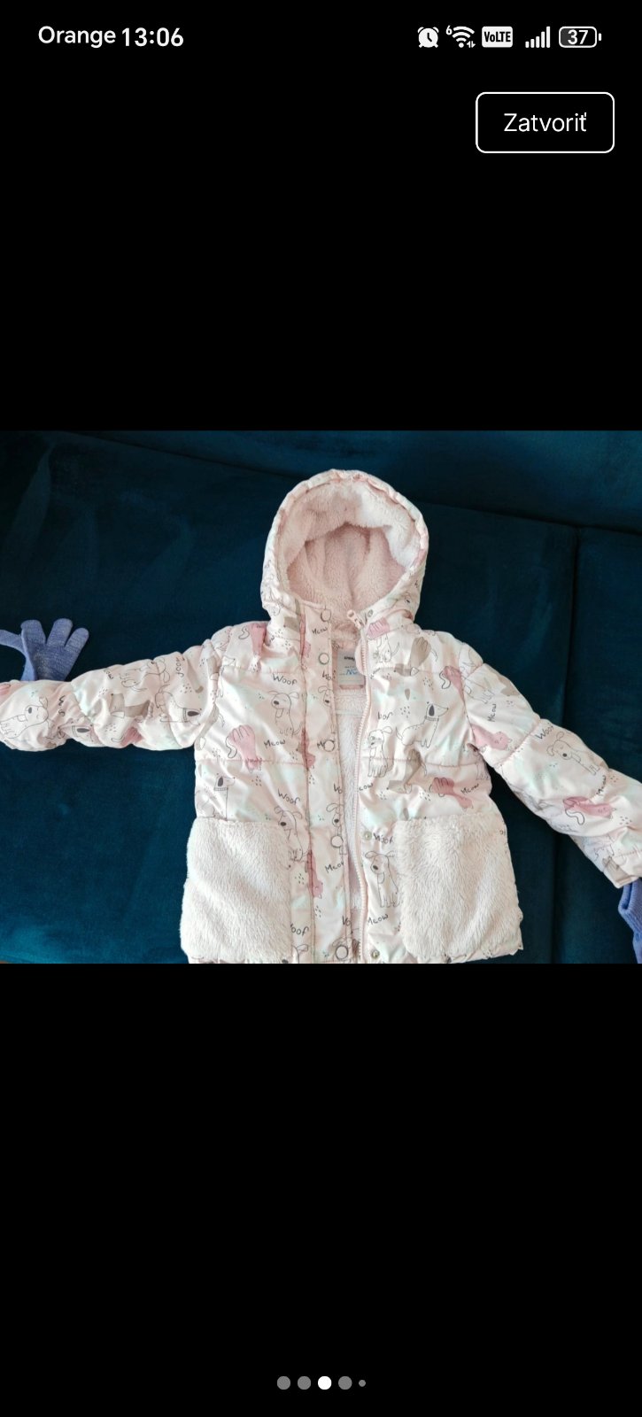 Predám úžasnú, jemnučko ružovú, vyteplenú kožušinkou, min.nosenú bundičku, dá sa prať v práčke, v skutočnosti je omnoho krajšia a mám dve aj 104 aj 110 velkosť, ale ta 110 sadne na 110 aj 116, sú nádherné, do škôlky som dcerke davala obyčajnú bundu, lacnejšiu táto je velmi pekná, neolutujete.Cenu som znížila,lebo mam velmi plné skrine a dcerka nestiha nosit