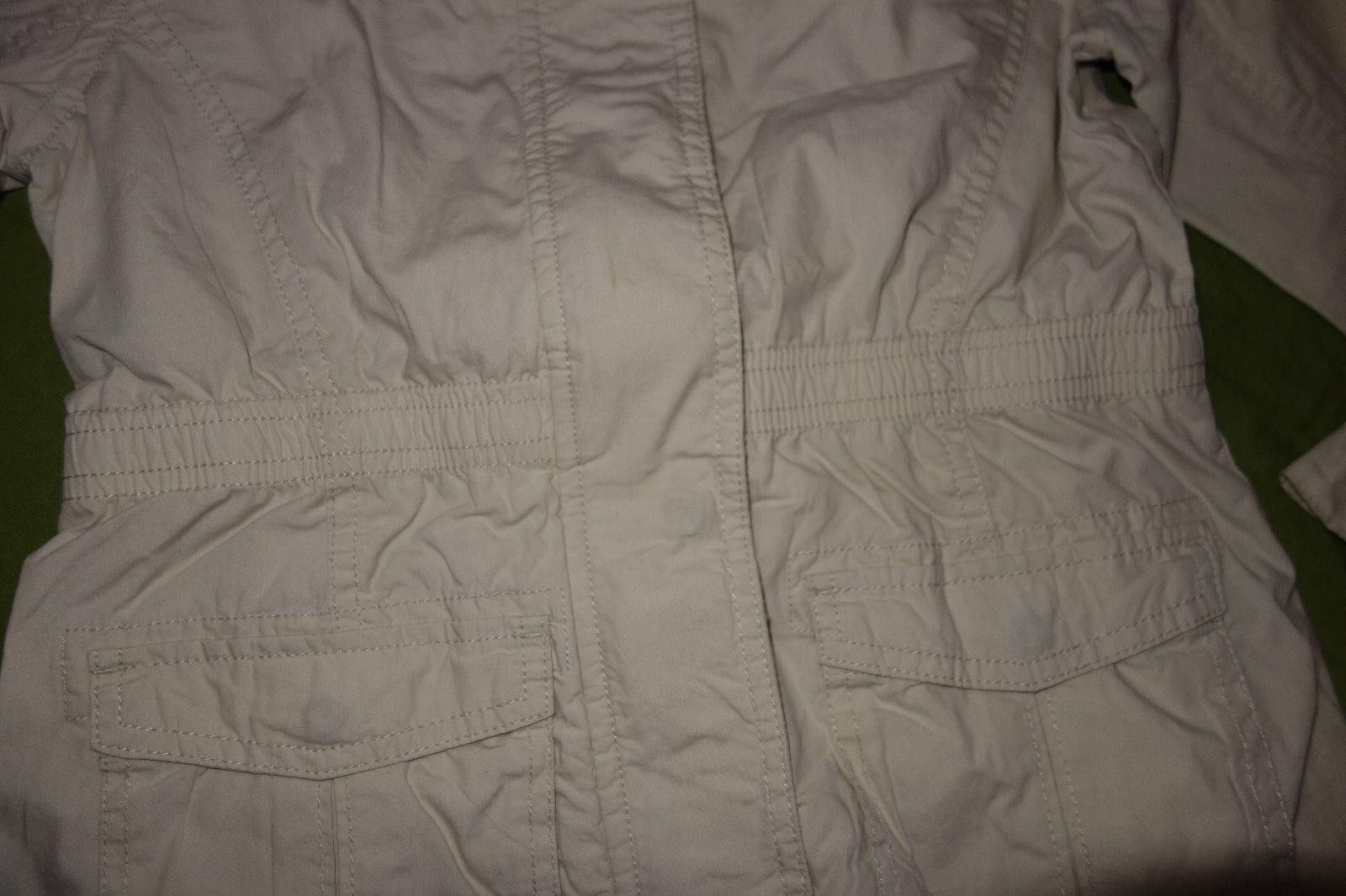 Krasna bundicka vo velmi dobrom stave. Ma roll up rukaviky. Velkost je uvedena ako XL- cize 152-ka. Je tenka, len podsita.