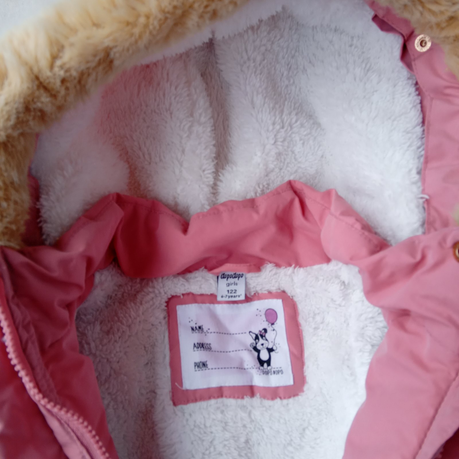 Teplá bundička s kožušinkovým zateplením dnu. Kožušinka na kapucni je odopínatelná. Veľmi dobrý stav.