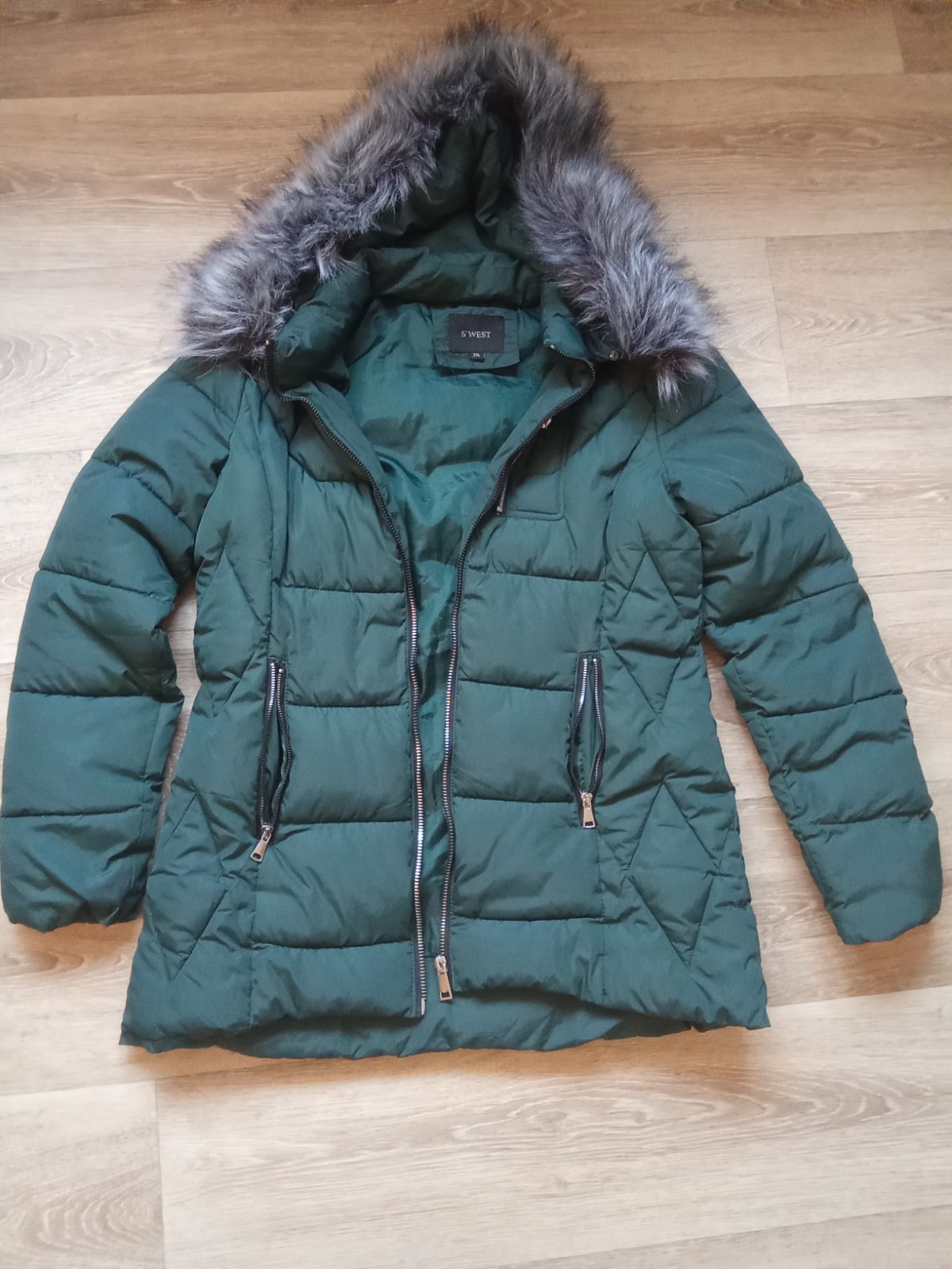 uplne nova s visackou krasna zimna parka smaragdova farba zuzuje sa v pase ma tam krasnu kozenu snurku na nastavenie pasa podla potreby , na kapuci a spodny lem parky do polky kremova tepla kozusin...