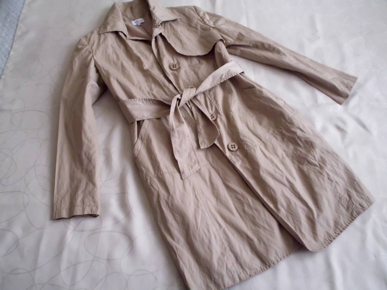 Predám dámsky prechodný kabátik trenčkot Italy vel. M, dĺžka 93 cm, šírka 50 cm, rukáv 61 cm , pekne vypracovaný s podšívkou, v páse opasok, 2 vrecká , bledá béžová farba ako na foto , top stav ...