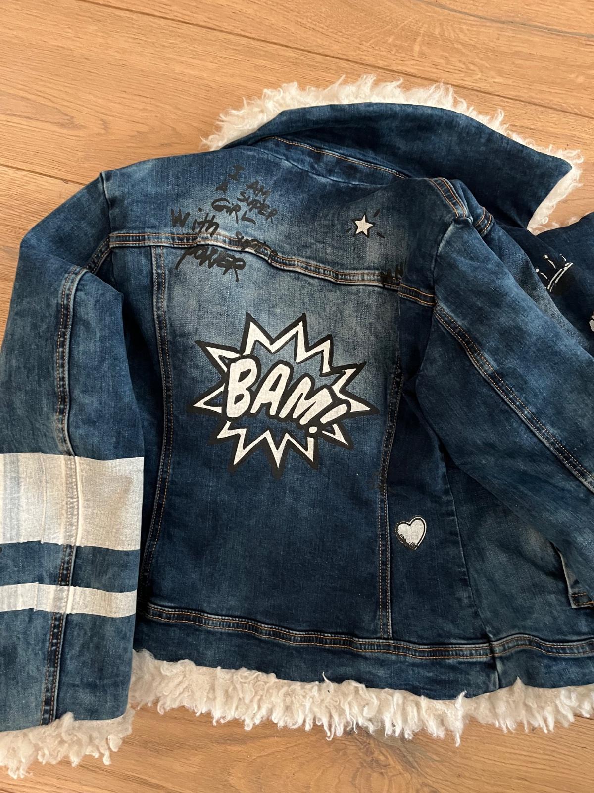 Paradna bomberka, predna a zadna cast hrubsia- podsita cast, riflovy material, s patentom, zapinanie ma cvoky, nosena parkrat, bez poskodeni a vad, univerzalny kusok