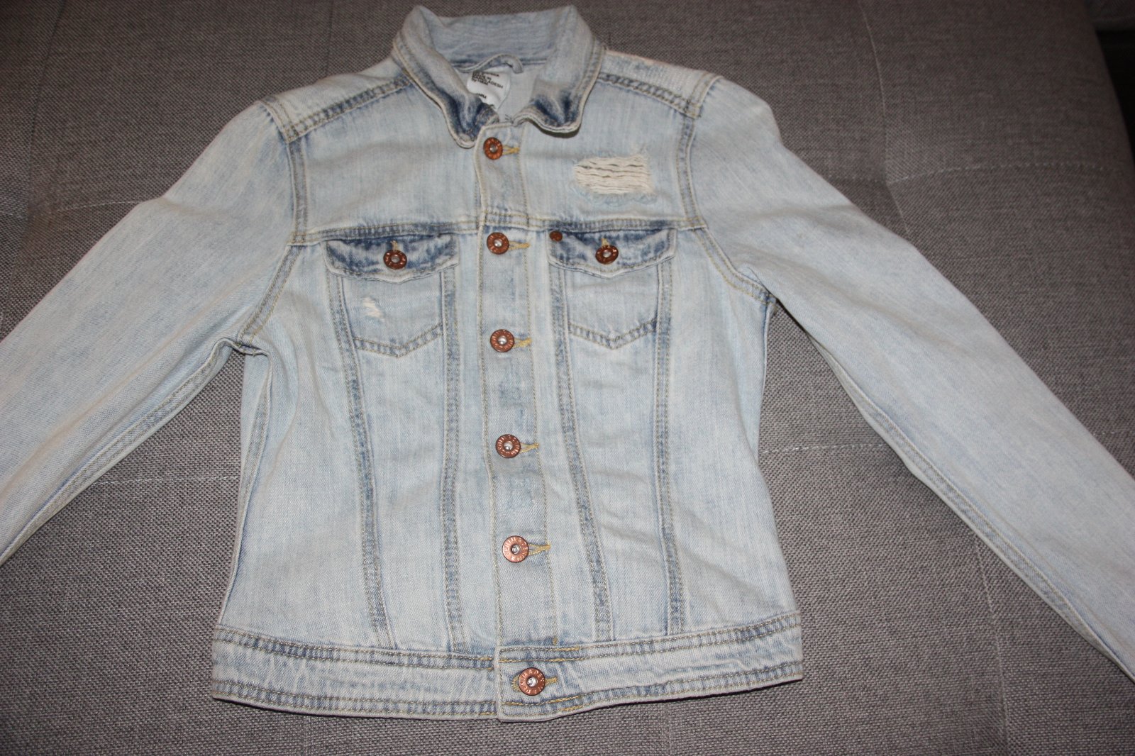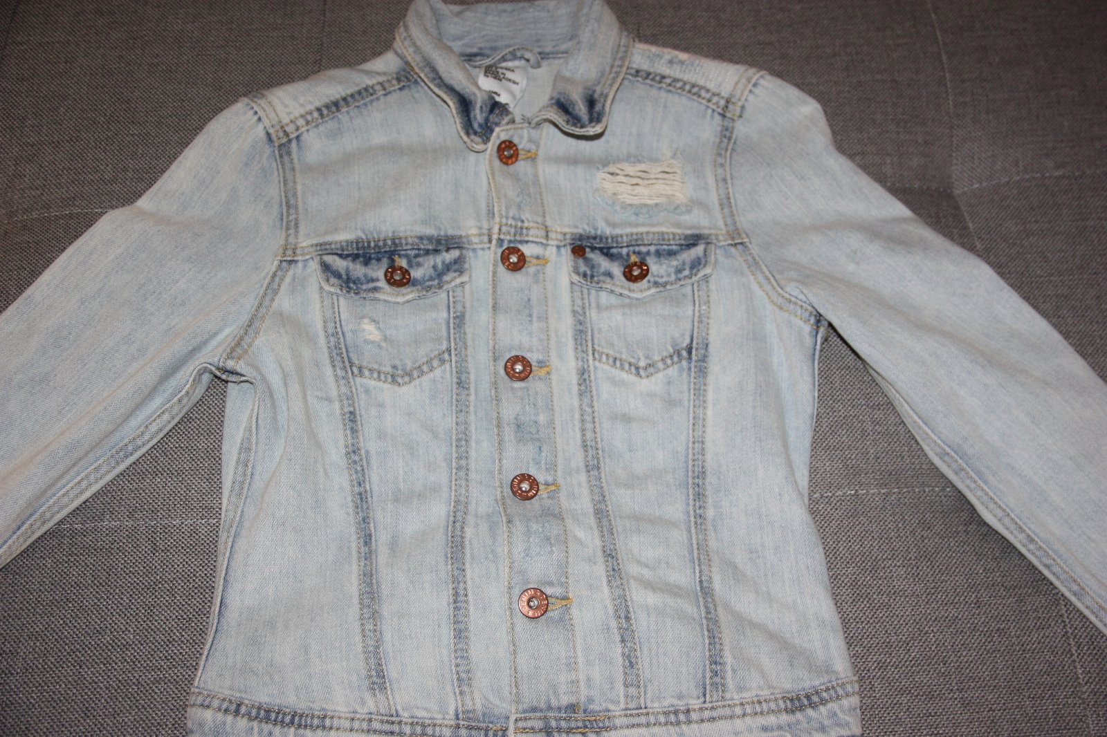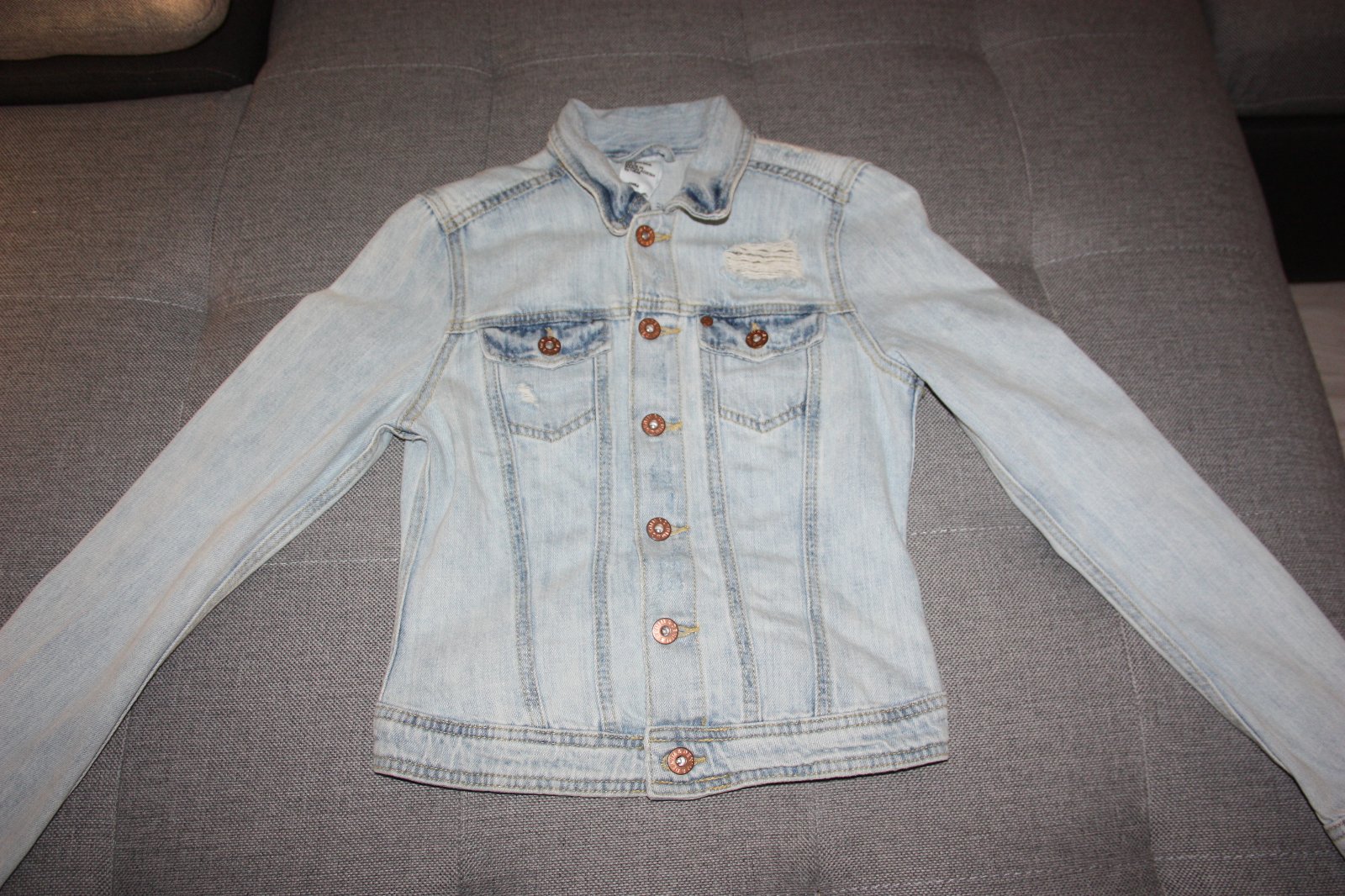 Velkost 34,len oprana riflova bunda.Mam dalsie dve tak tuto uz nevyuzijem.Dlzka vpredu 51cm,vzadu 45cm,sirka pod pazuchami 39cm rukav od ramena 61cm a od krku 69cm.