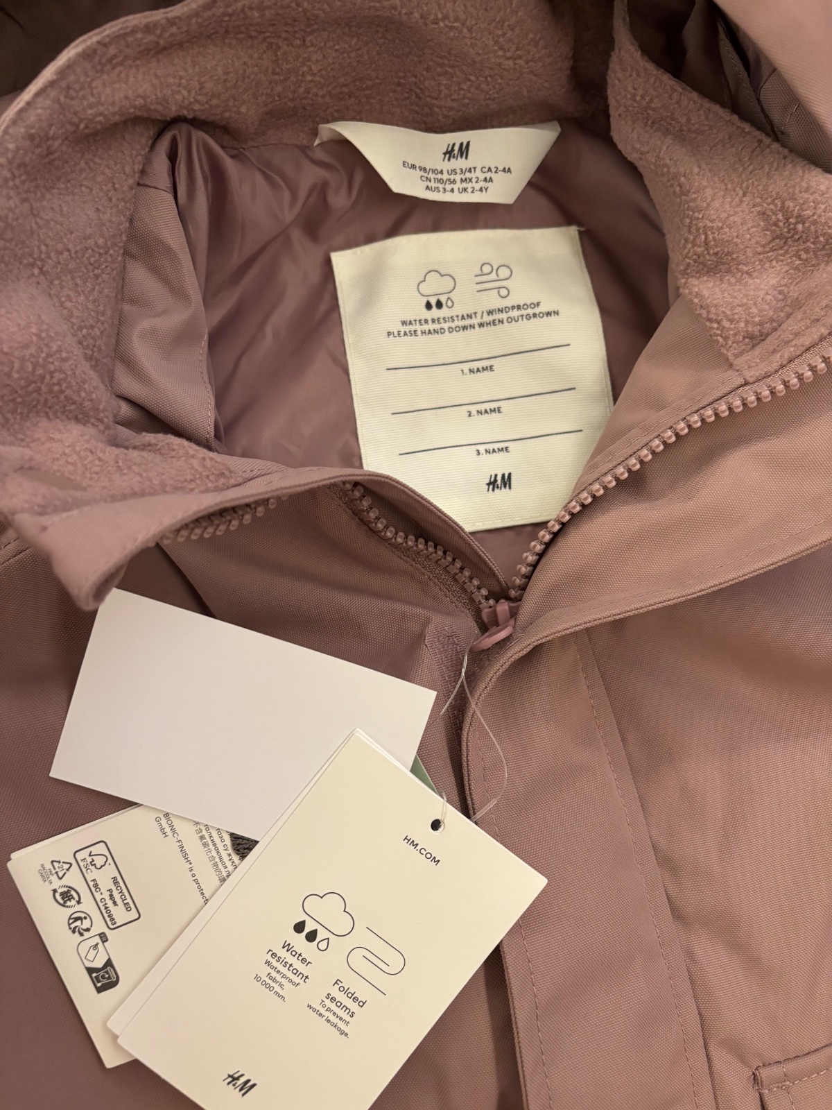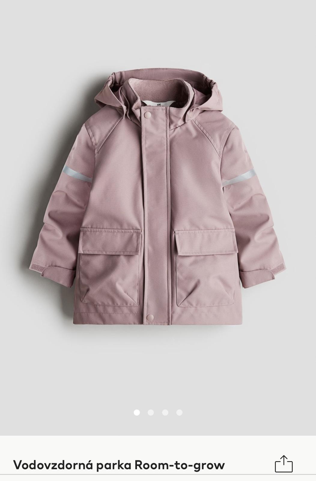 Nová vetruodolna bunda H&M vel. 98/104. Pôvodná cena 40€. S visackou vodovzdorna parka Room - to - grow