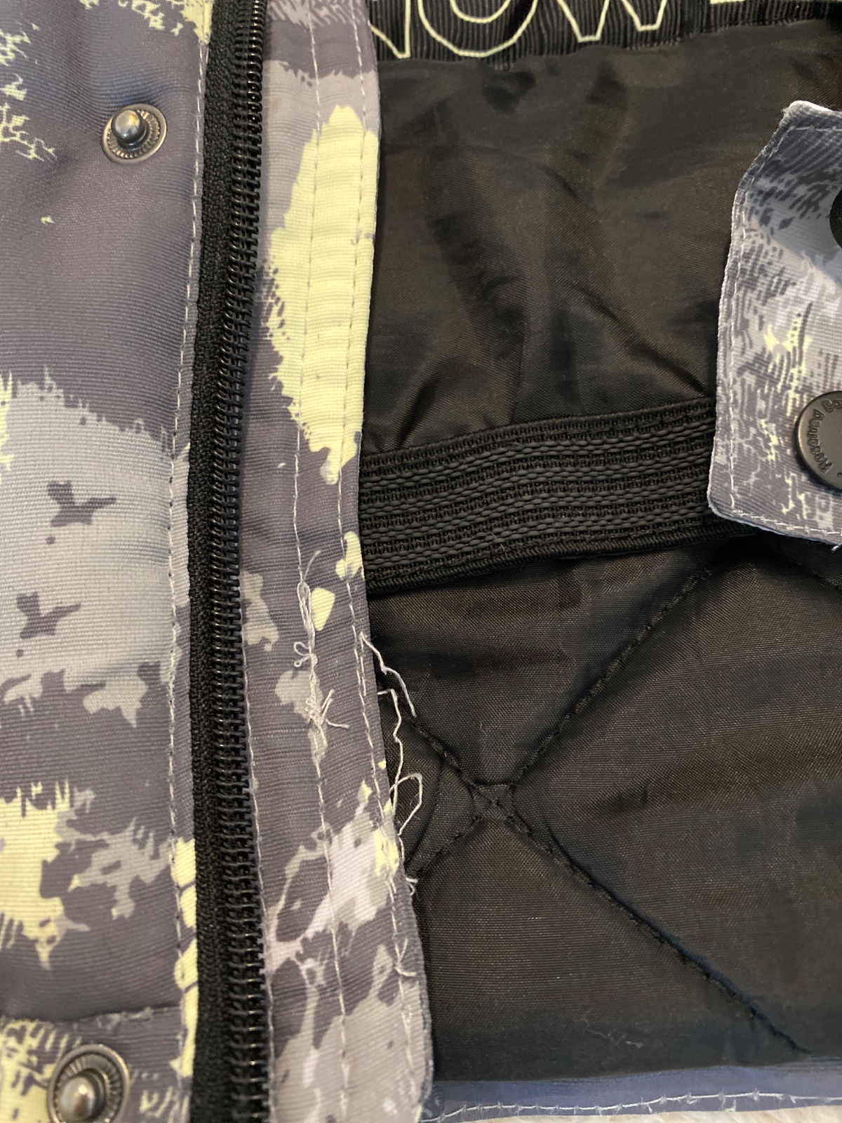 Ma jeden fliačikom na lyžiarskom pase- vo vnútri bundy čiže ho nevidieť a niekde trčia nitky, vid foto.