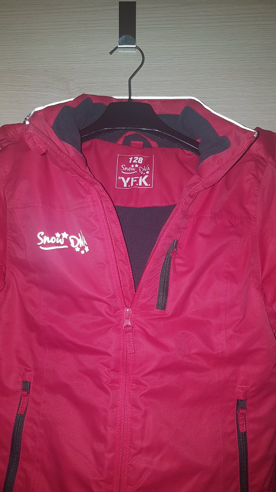 Na predaj krásna sýto ružová dievčenská zimná bunda veľkosť 128, s reflexnými prvkami, teplučká - zvnútra vpredu i chrbát, na golieri aj v kapucni mikrofleece. Vnútorné vrecká, vrecko na skipas, snežný pás, rukáv má dole patent aj s otvorom na palec.