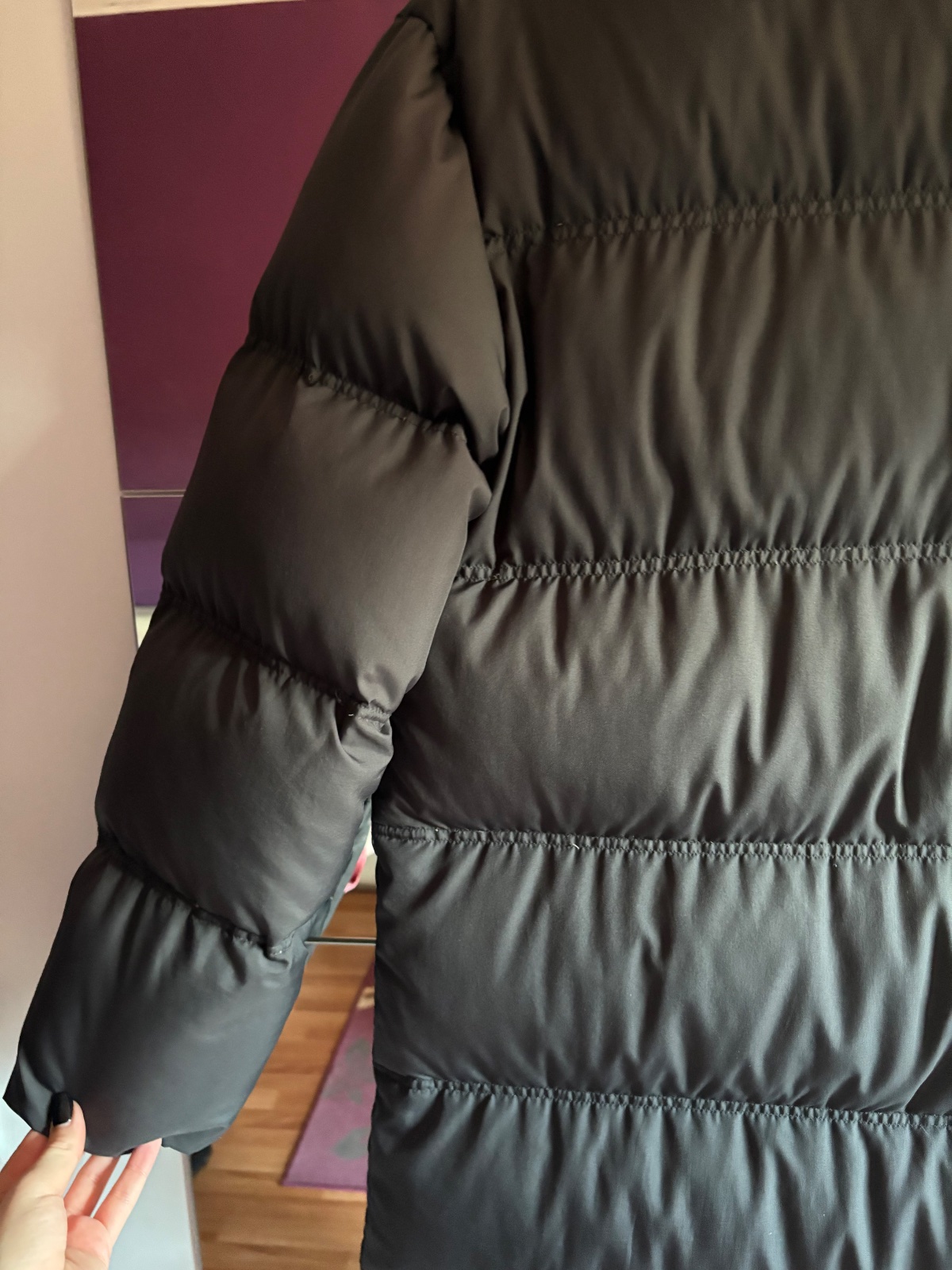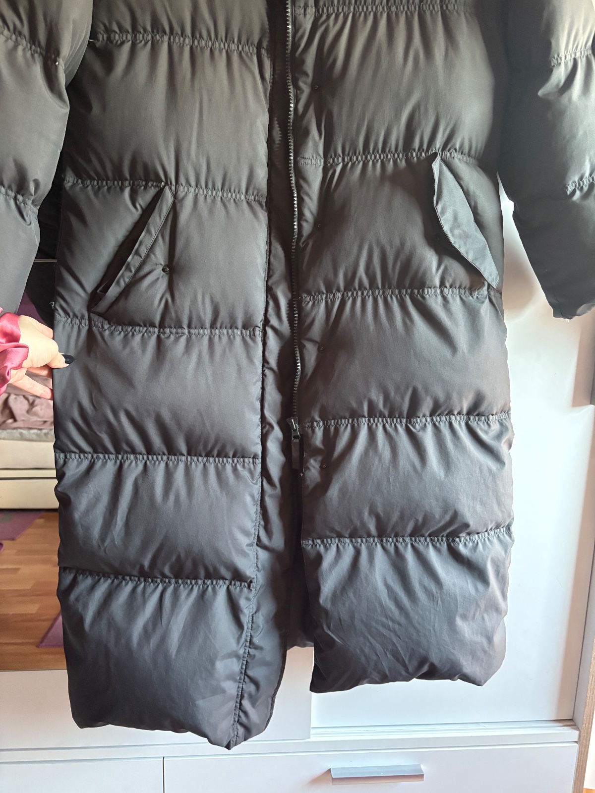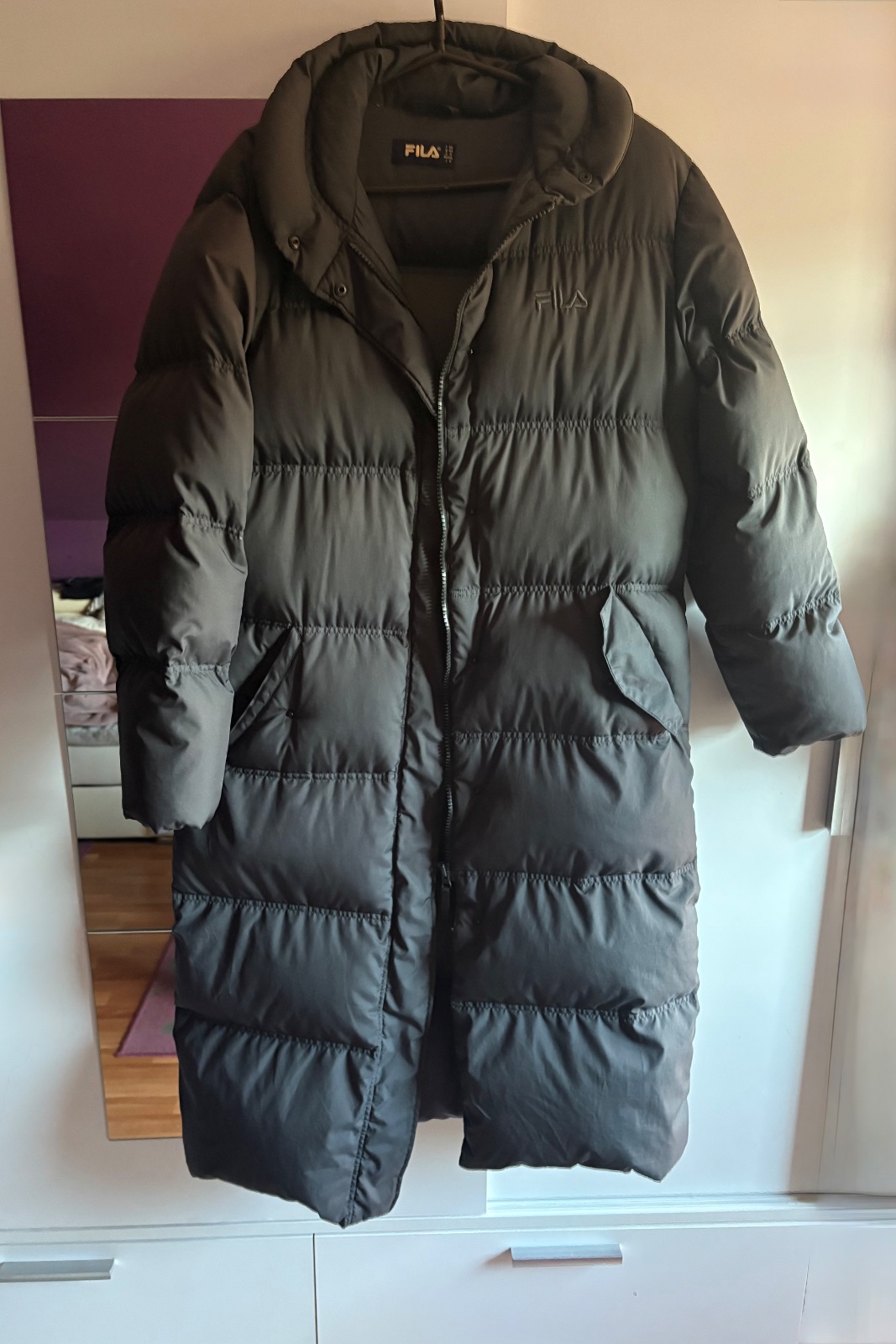 V dobrom stave ako na foto. Veľmi teplá a dlhá bunda. Nemá kapucňu. Zips je funkčny. Veľkosť vhodné aj kludne aj na XL. Veľkosť 44.