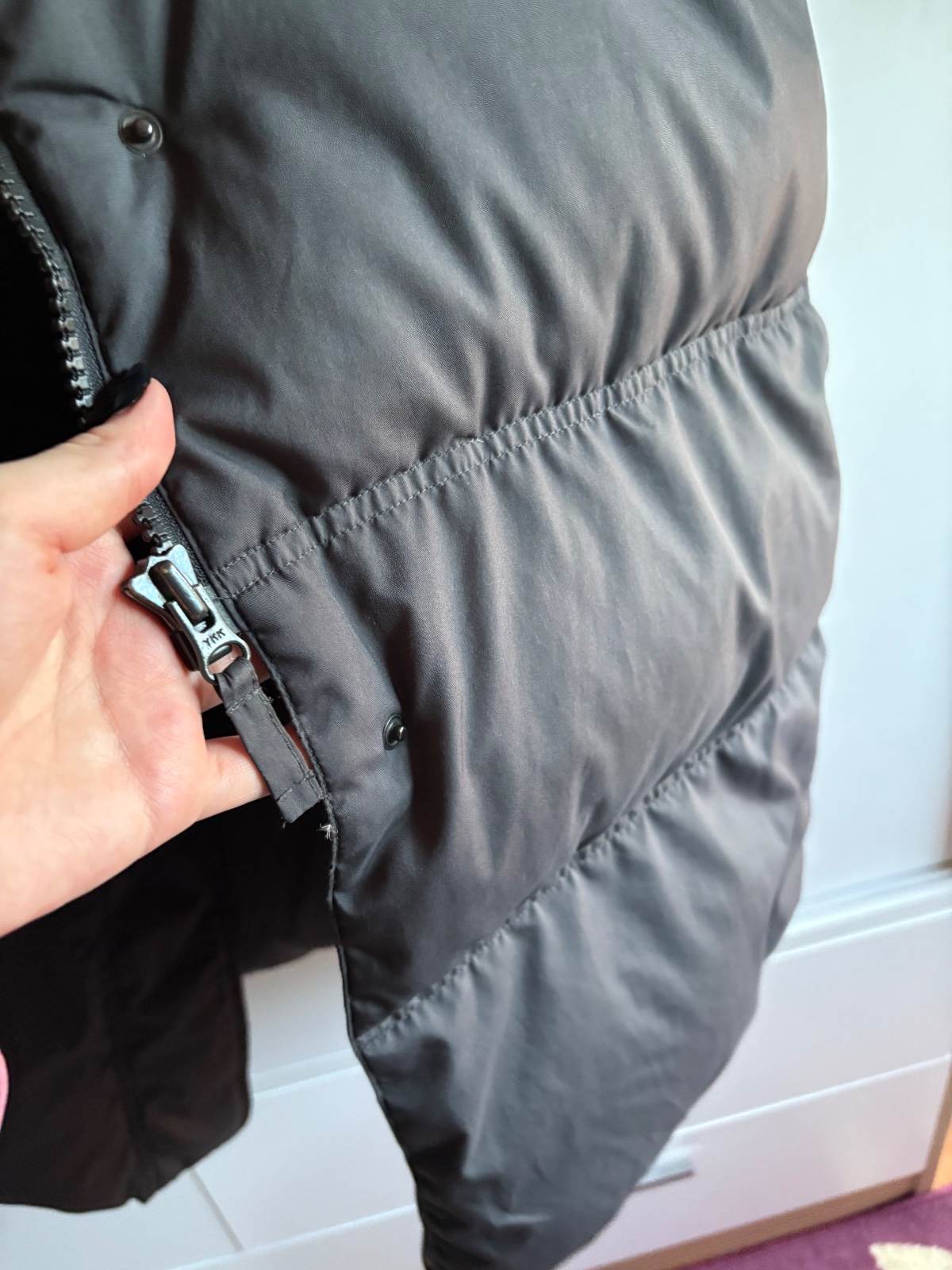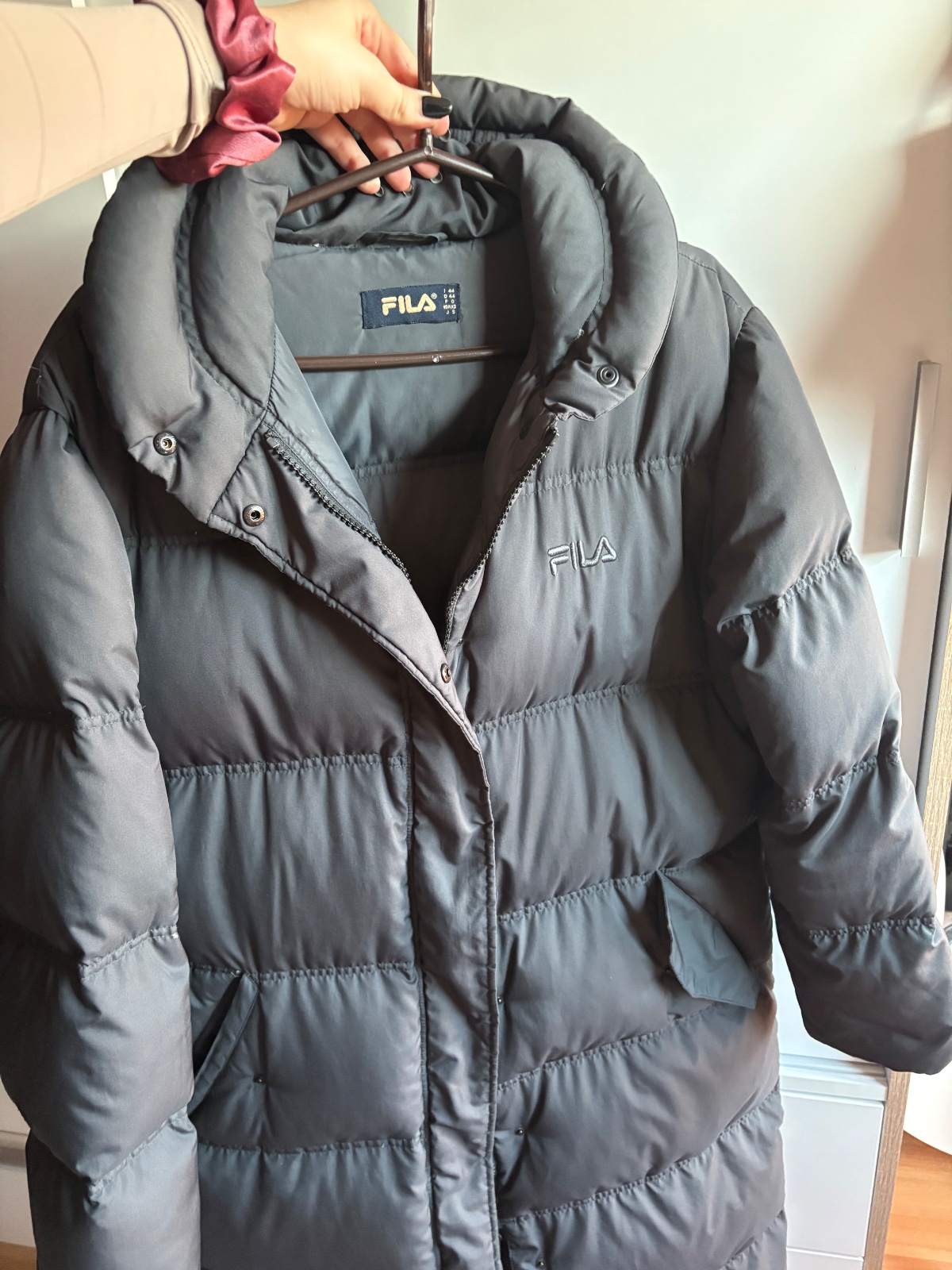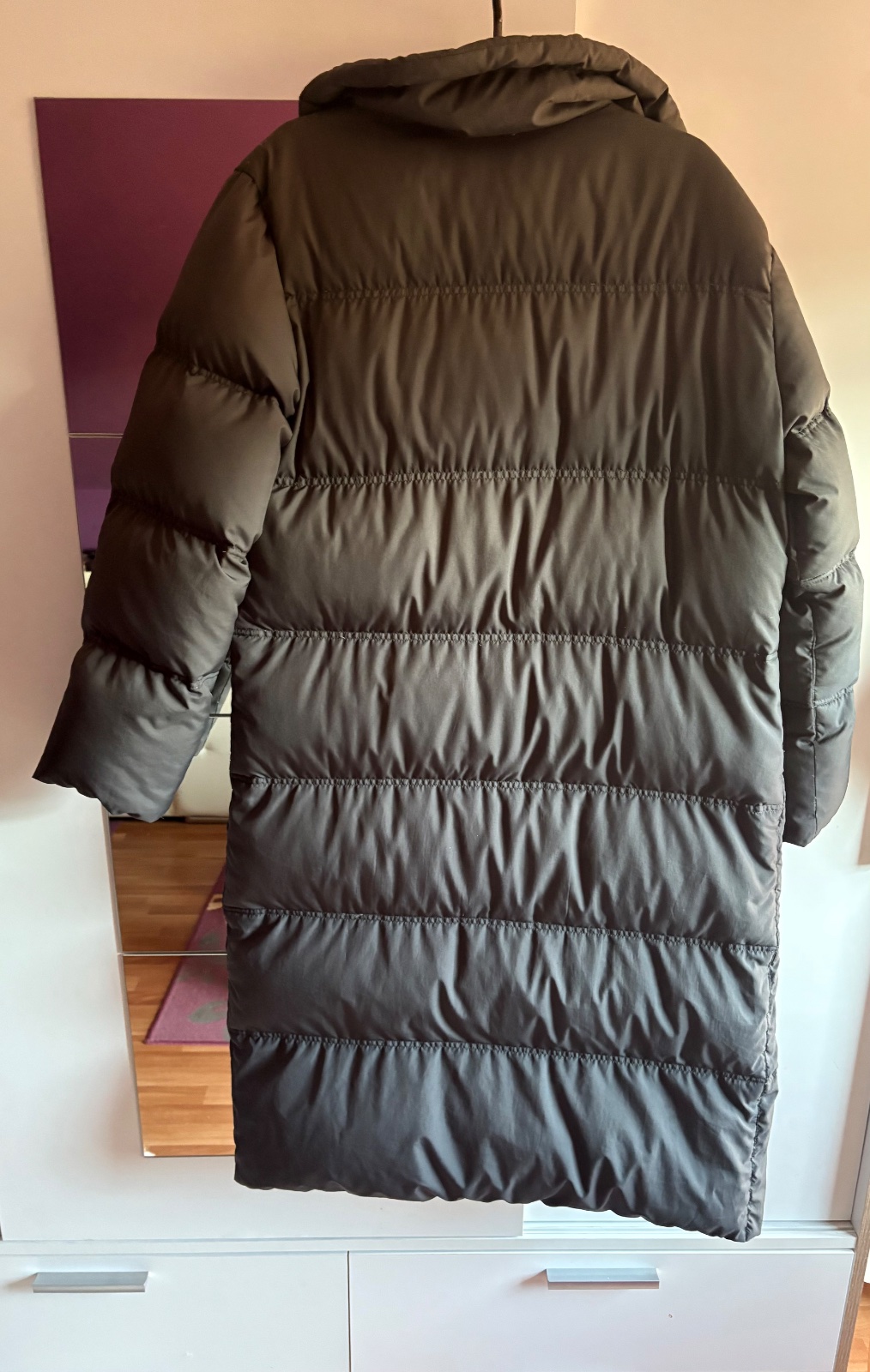 V dobrom stave ako na foto. Veľmi teplá a dlhá bunda. Nemá kapucňu. Zips je funkčny. Veľkosť vhodné aj kludne aj na XL. Veľkosť 44.