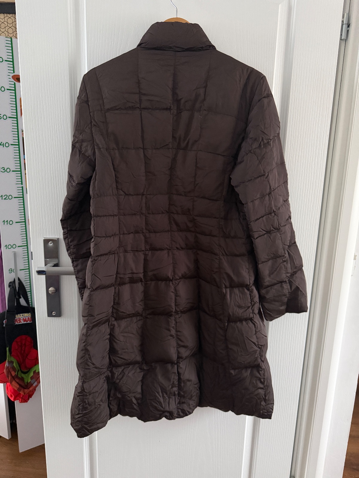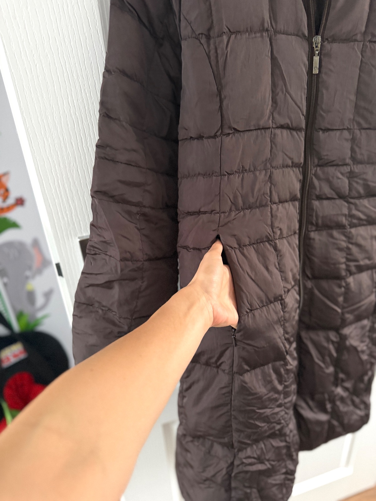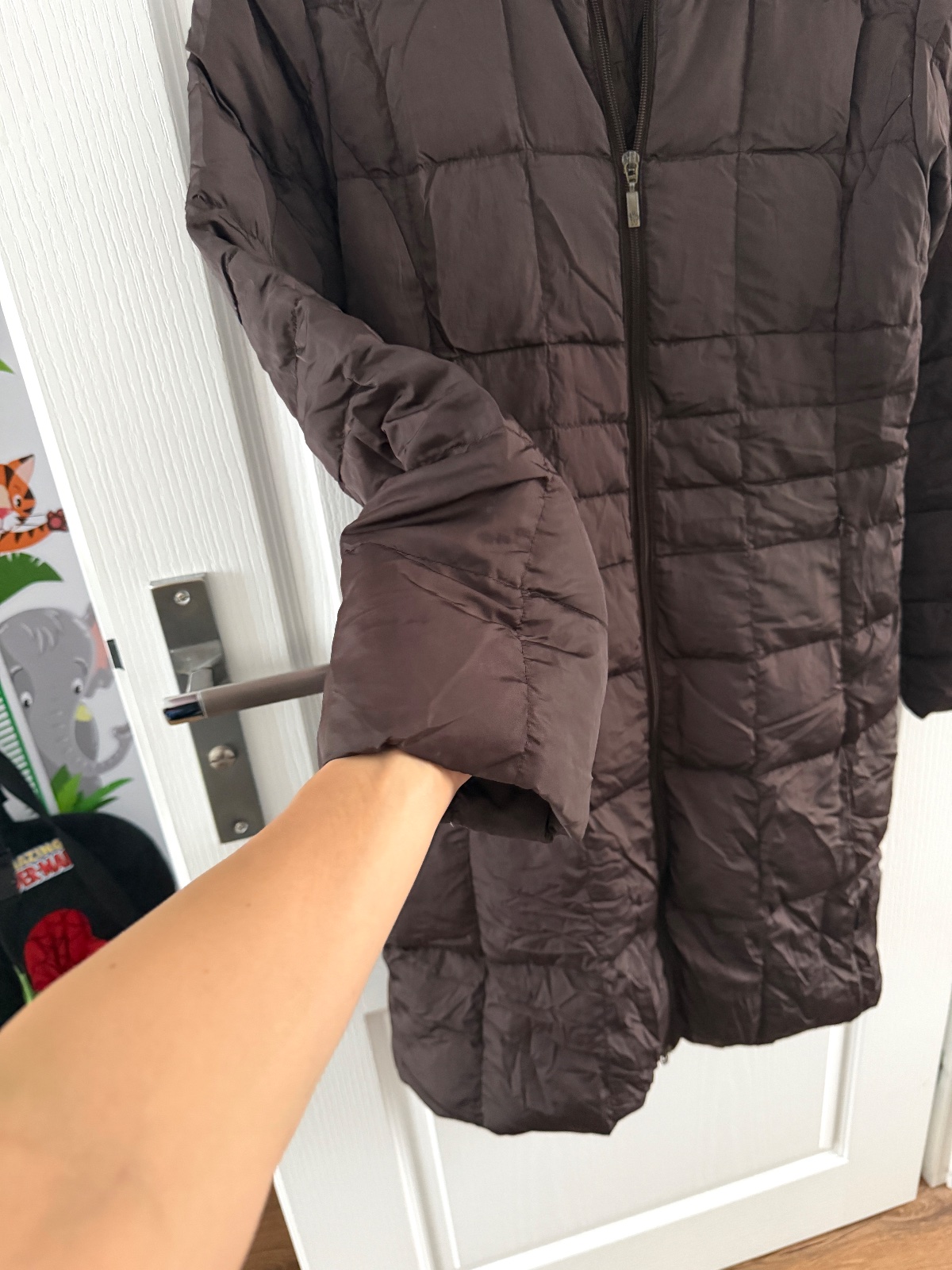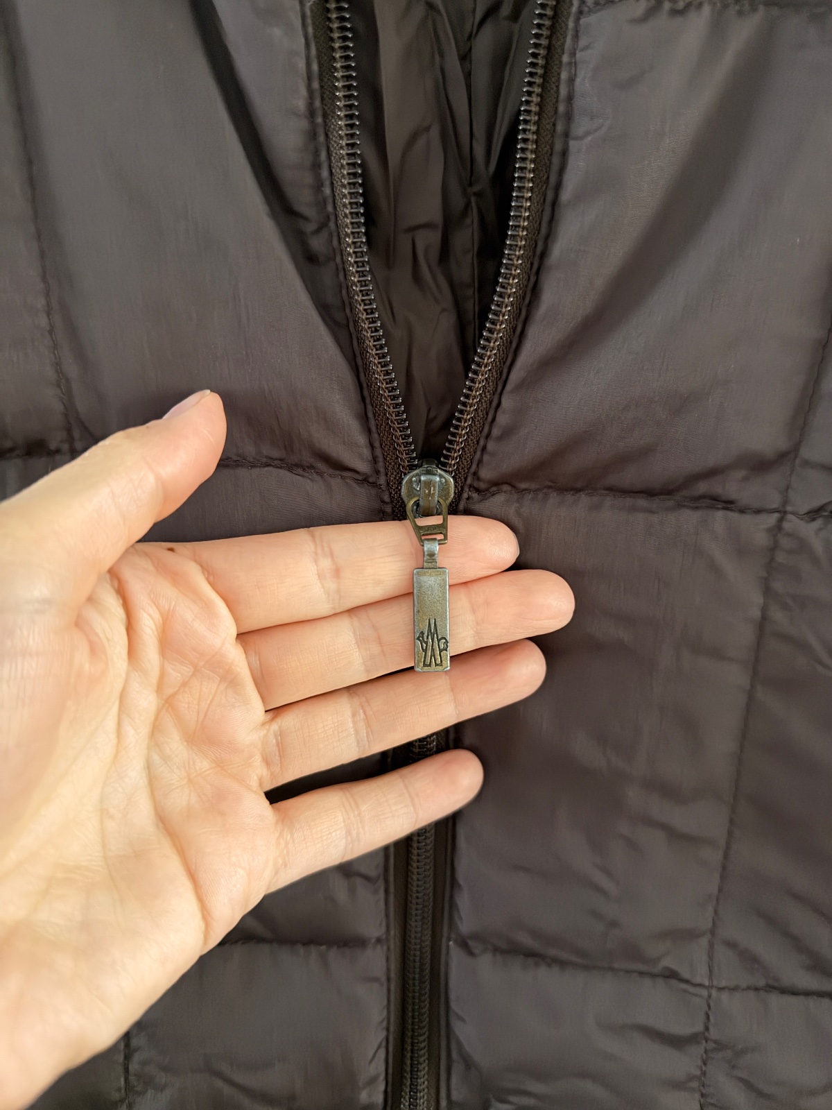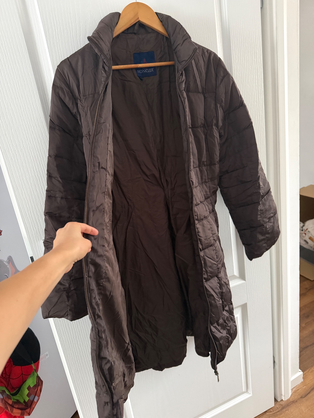 Vintage páperový kabát Moncler v čokoládovohnedej farbe. Bunda sa zapína na obojsmerný zips. Má vysoký golier. Po bokoch sú tiež vrecká na zips. Výplň je z páperia a peria. Kabát je ľahký, no zároveň veľmi teplý. Veľkosť by som opísala ako L. Šírka pod pazuchami je približne 50 cm a dĺžka je približne 100 cm.