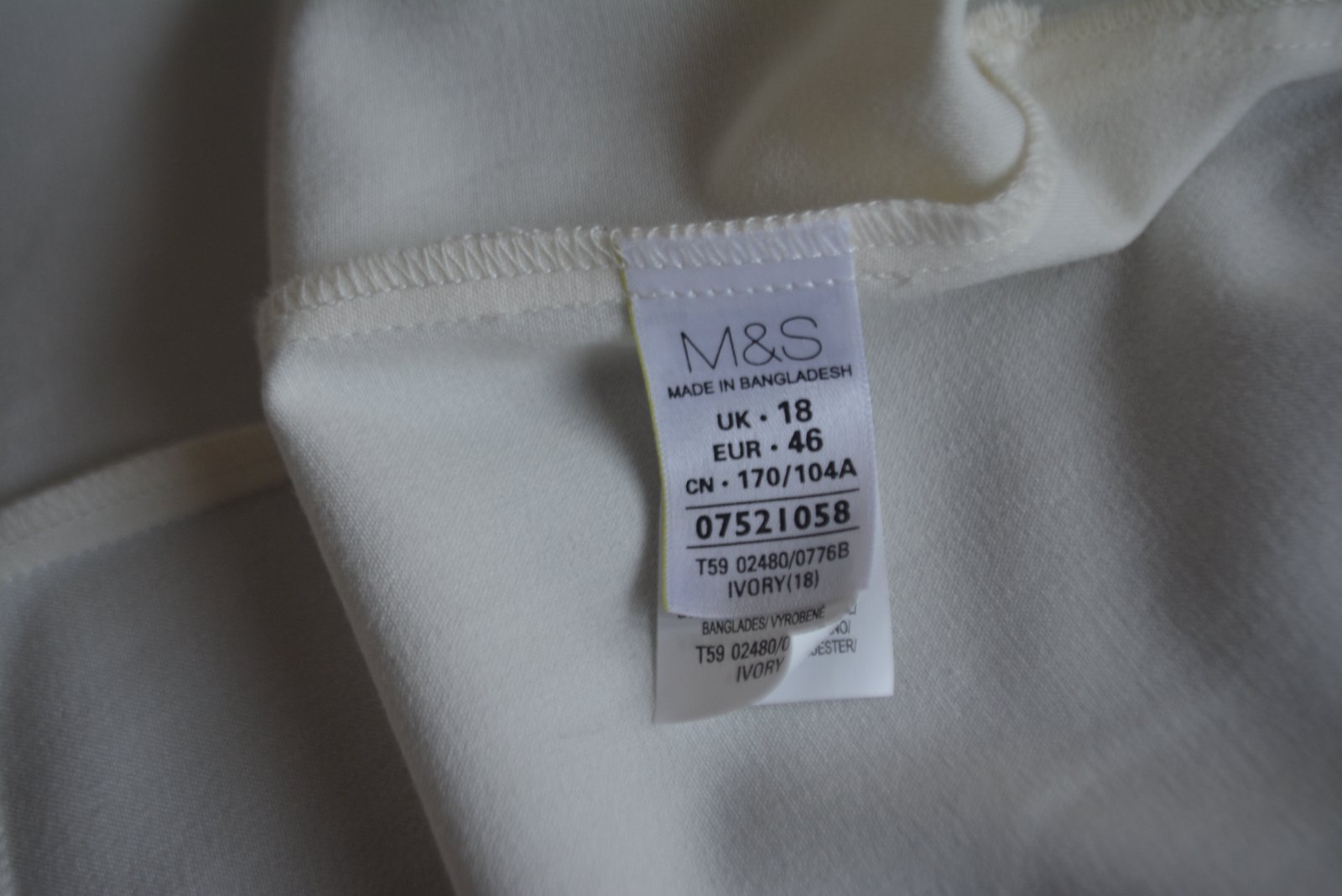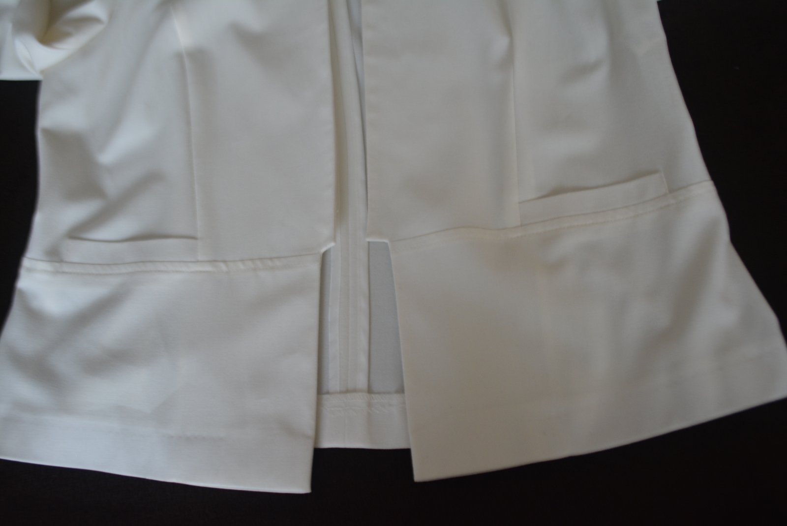 Farba nie je úplne snehobiela, skôr celkom svetlučká maslová. Veľmi pekne šité.
