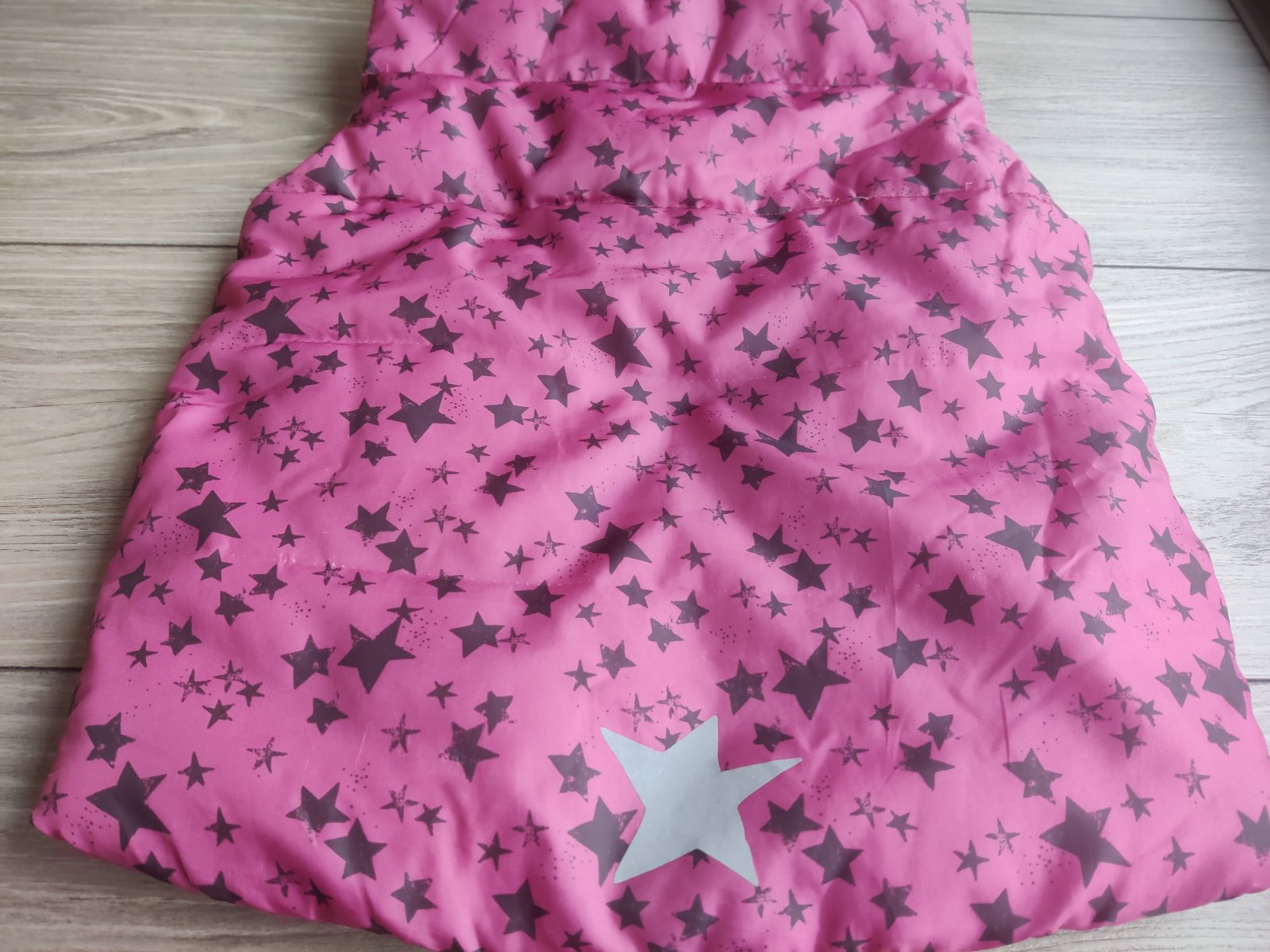 Zateplené vesta s motívom koníka, nosená.
