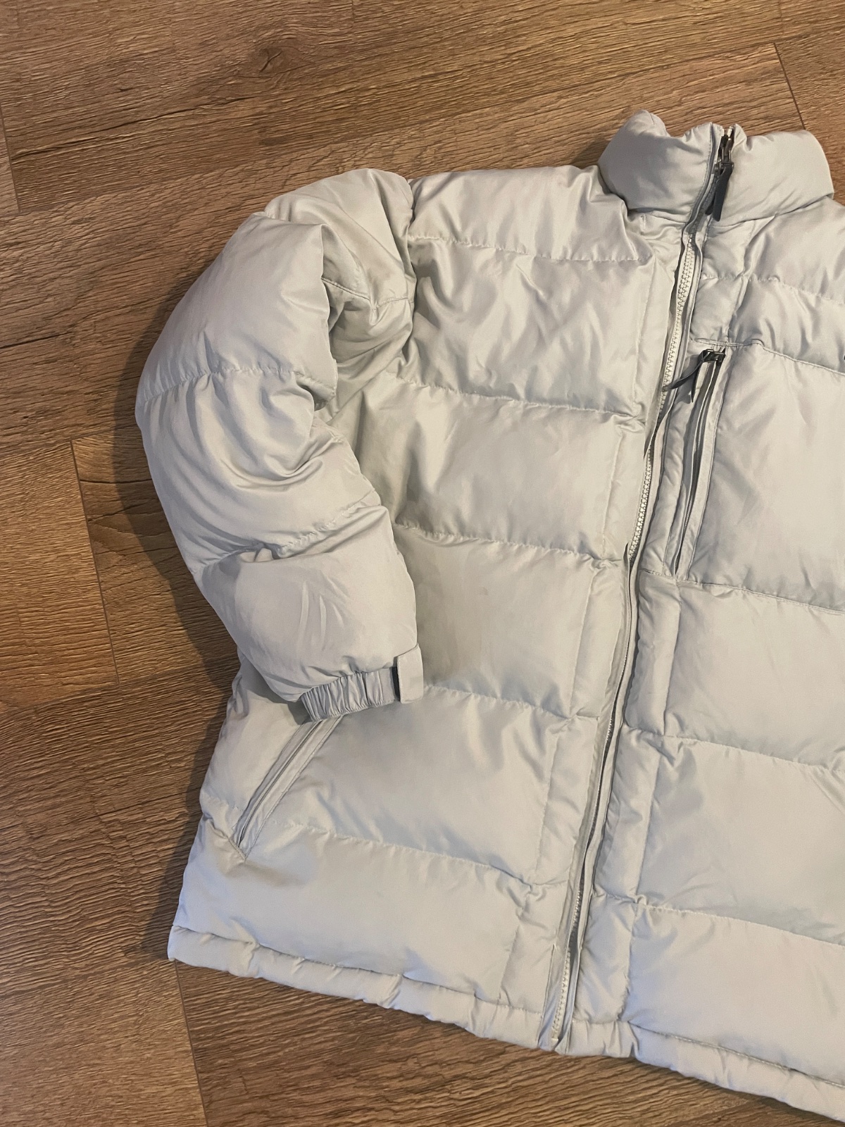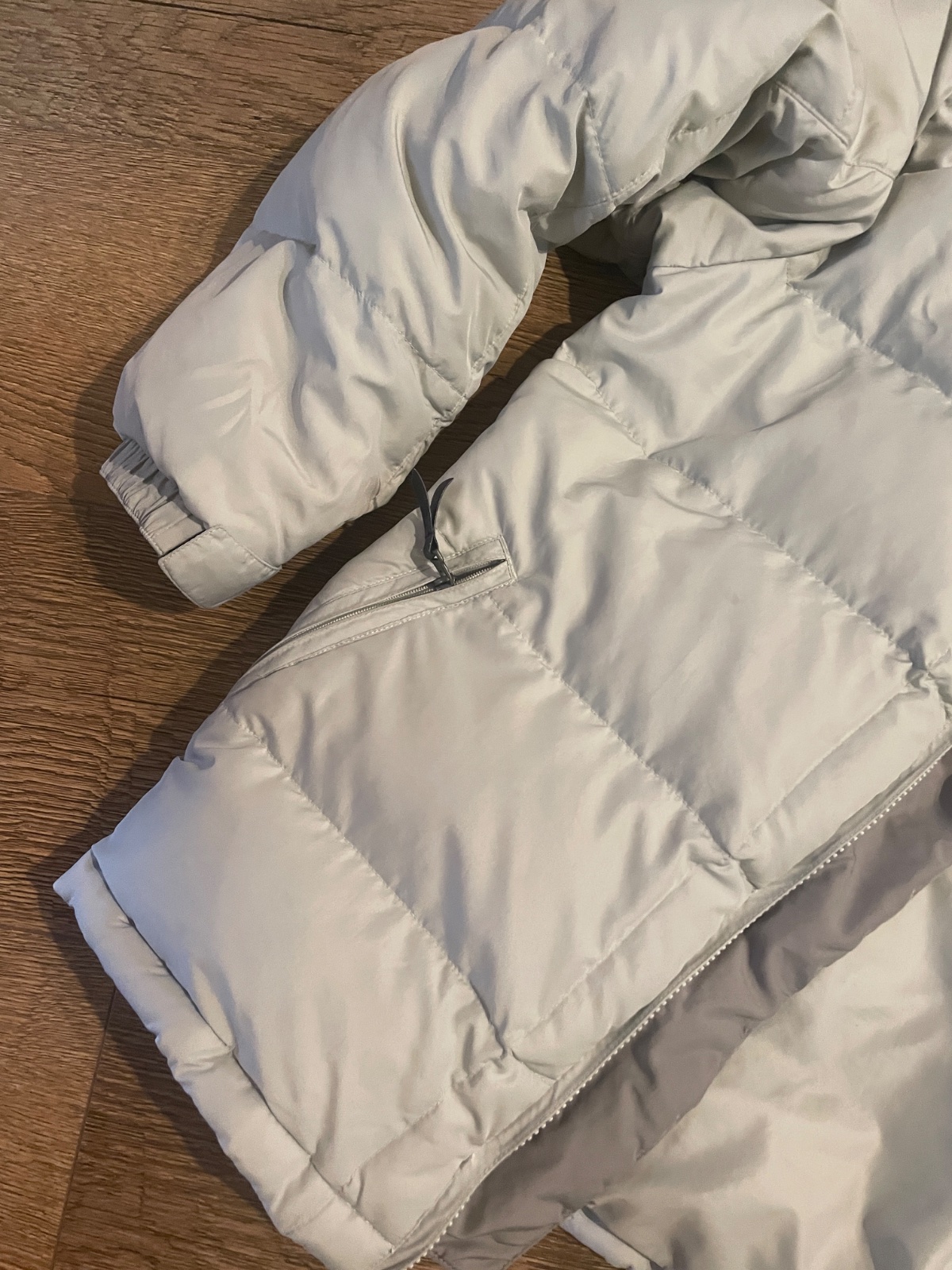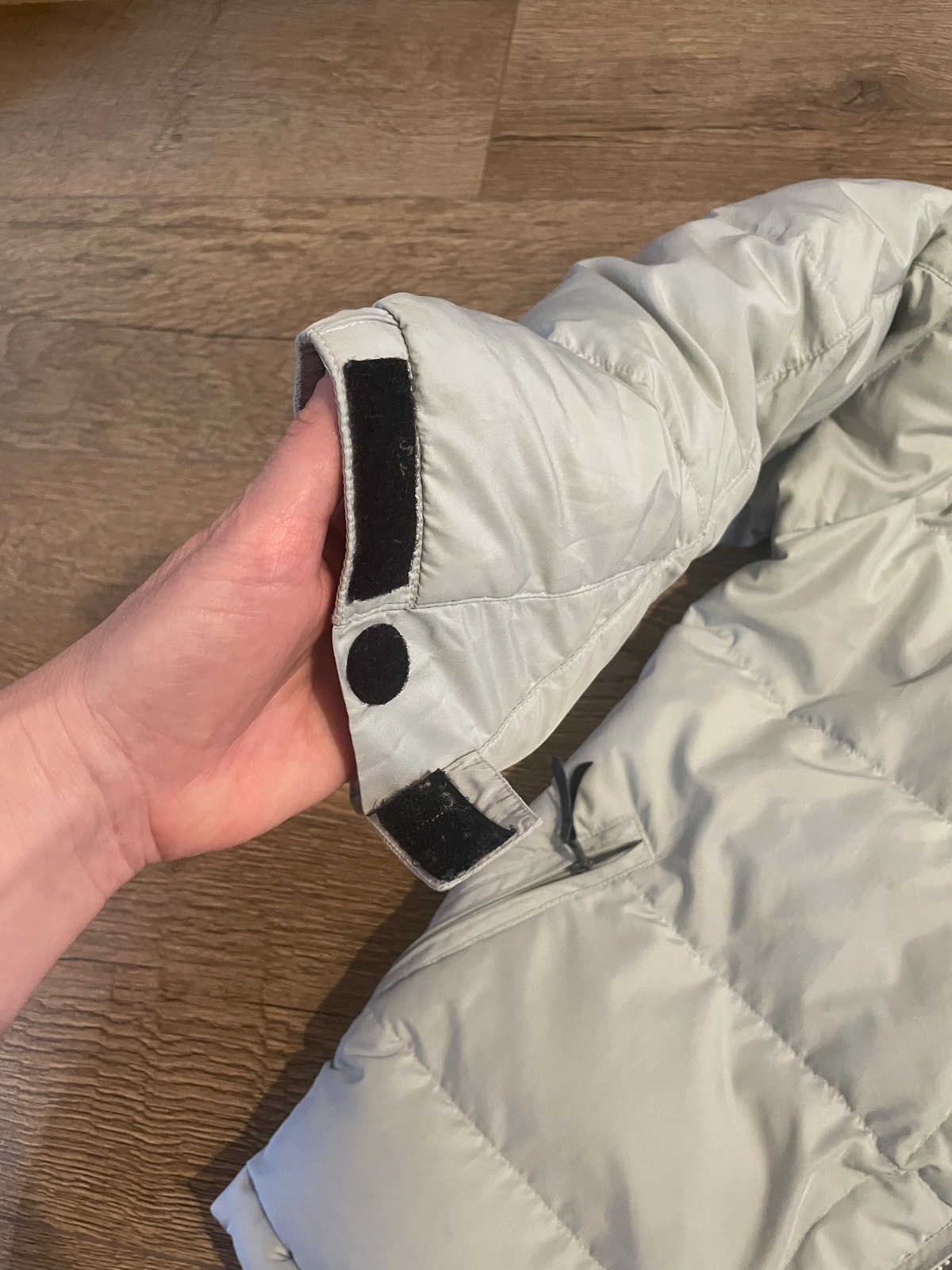 Farba niečo svetlošedou a bledunko modrou . Veľkosť písaná detská L čiže sedí 158/164/170 . Je pufovaná páperová Bunda . Odporúčam . Syn ju nosil na striedačku s inými bundami čiže dobrý nosený stav . Rukáv sa dá pekne prispôsobiť keďže je na suchý zips . My sme ju nosili aj 3 sezóny .