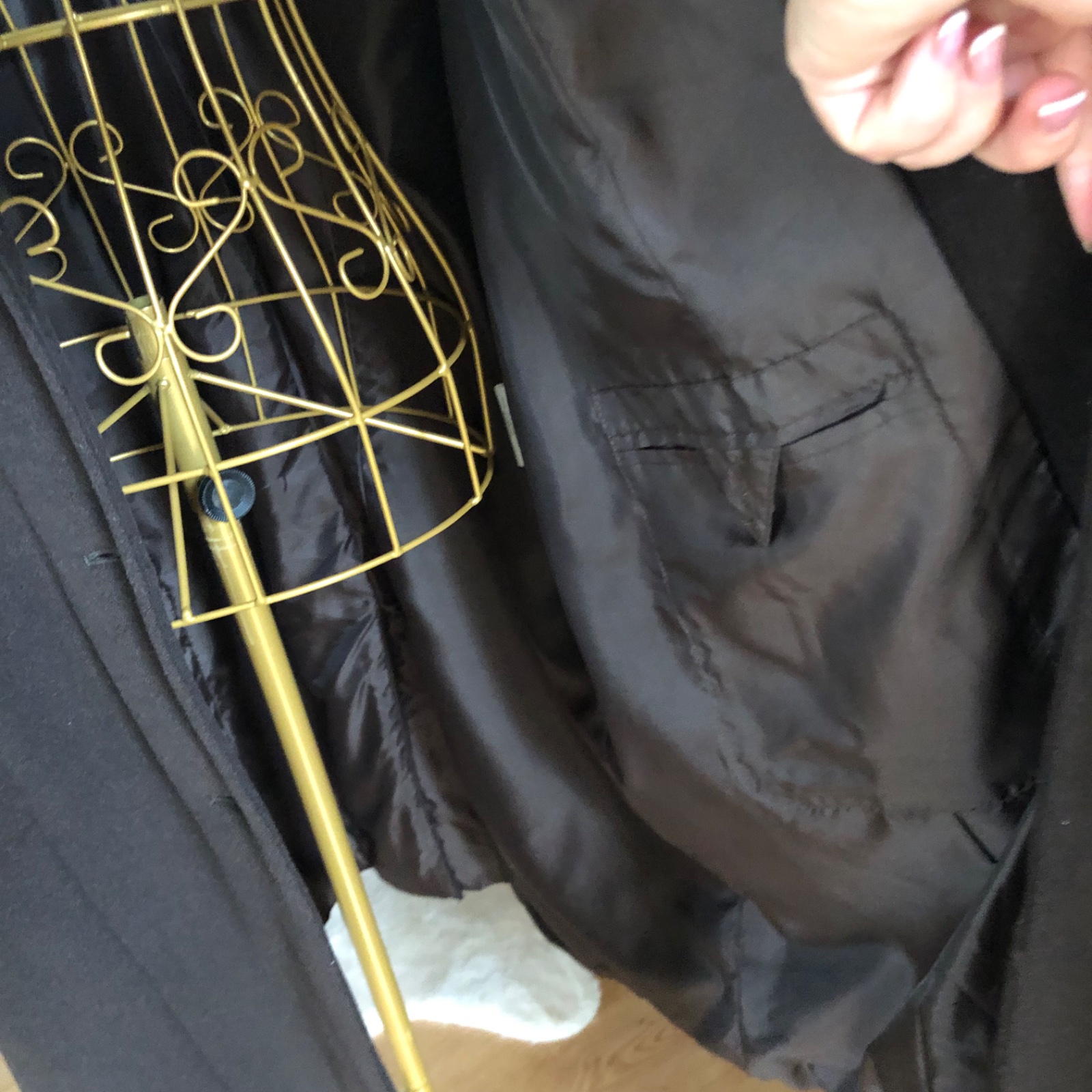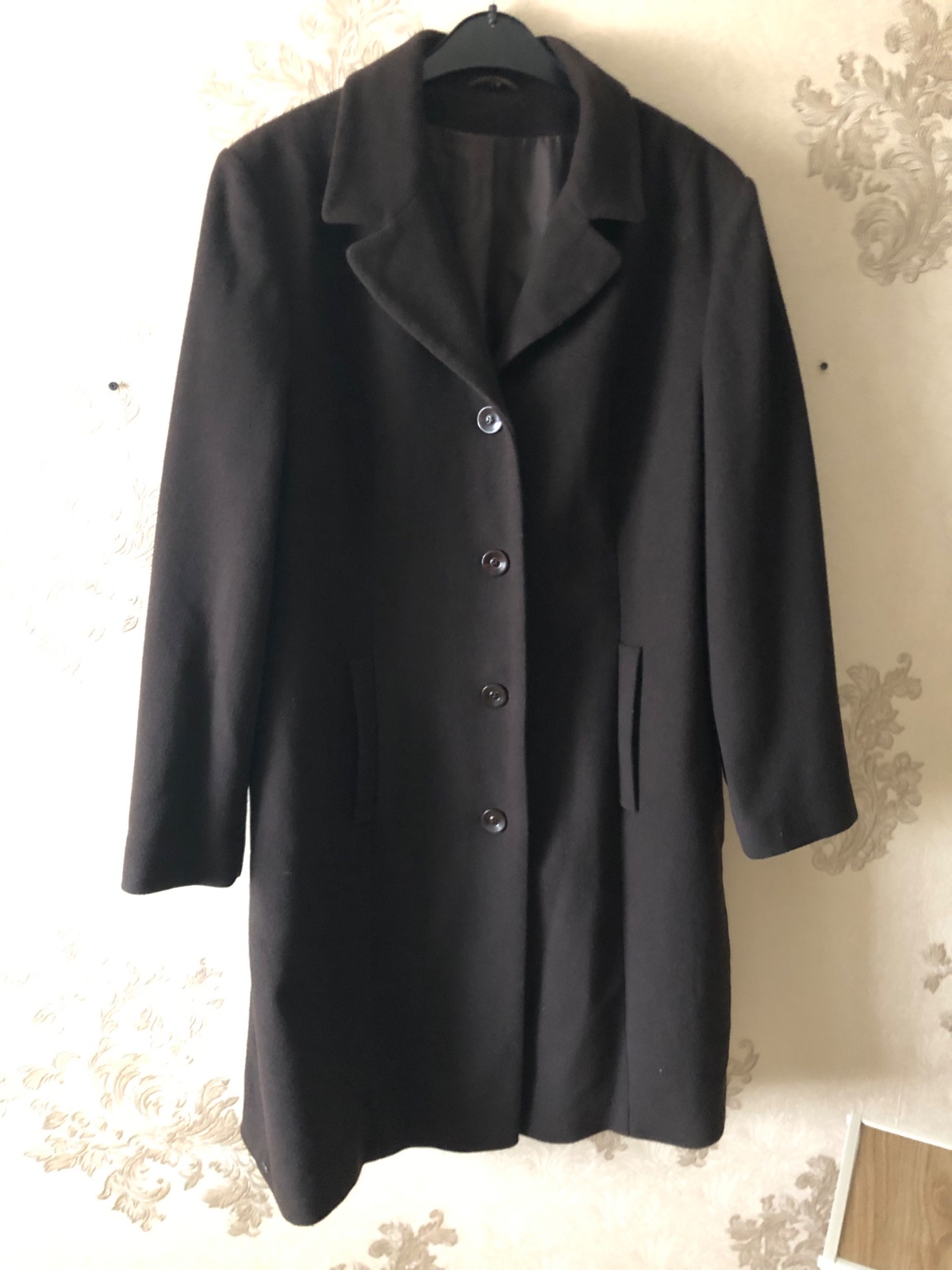 Kvalitný vlneny kabat, zapínanie na gombíky, podšitý, všité vrecká, vzadu rozparok, super stav.