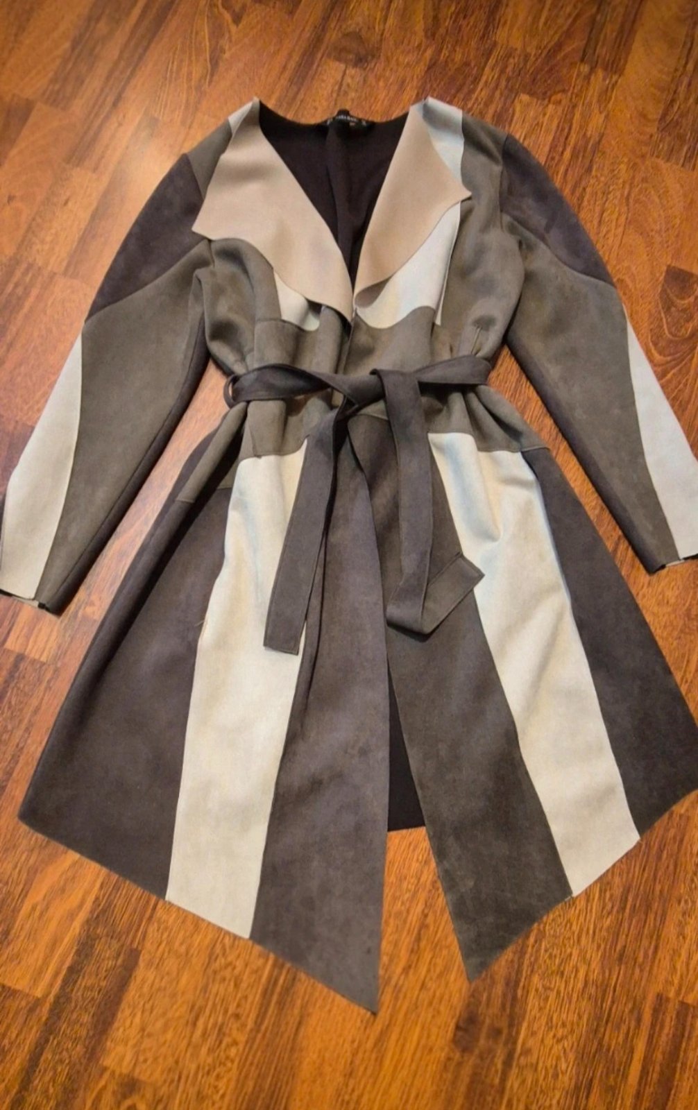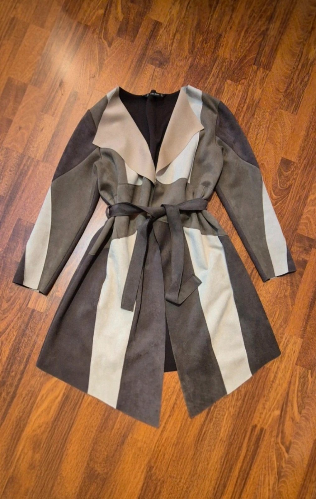 Kvalitný plášť, kabátik prechodný, uväzuje sa opaskom imitácia brúsenej kože, nádherný, kvalitná značka, raz oblečený, ako nový. Pis. S, no sedí na M, je aj dosť pružný, poddajný, veľmi komfortný.