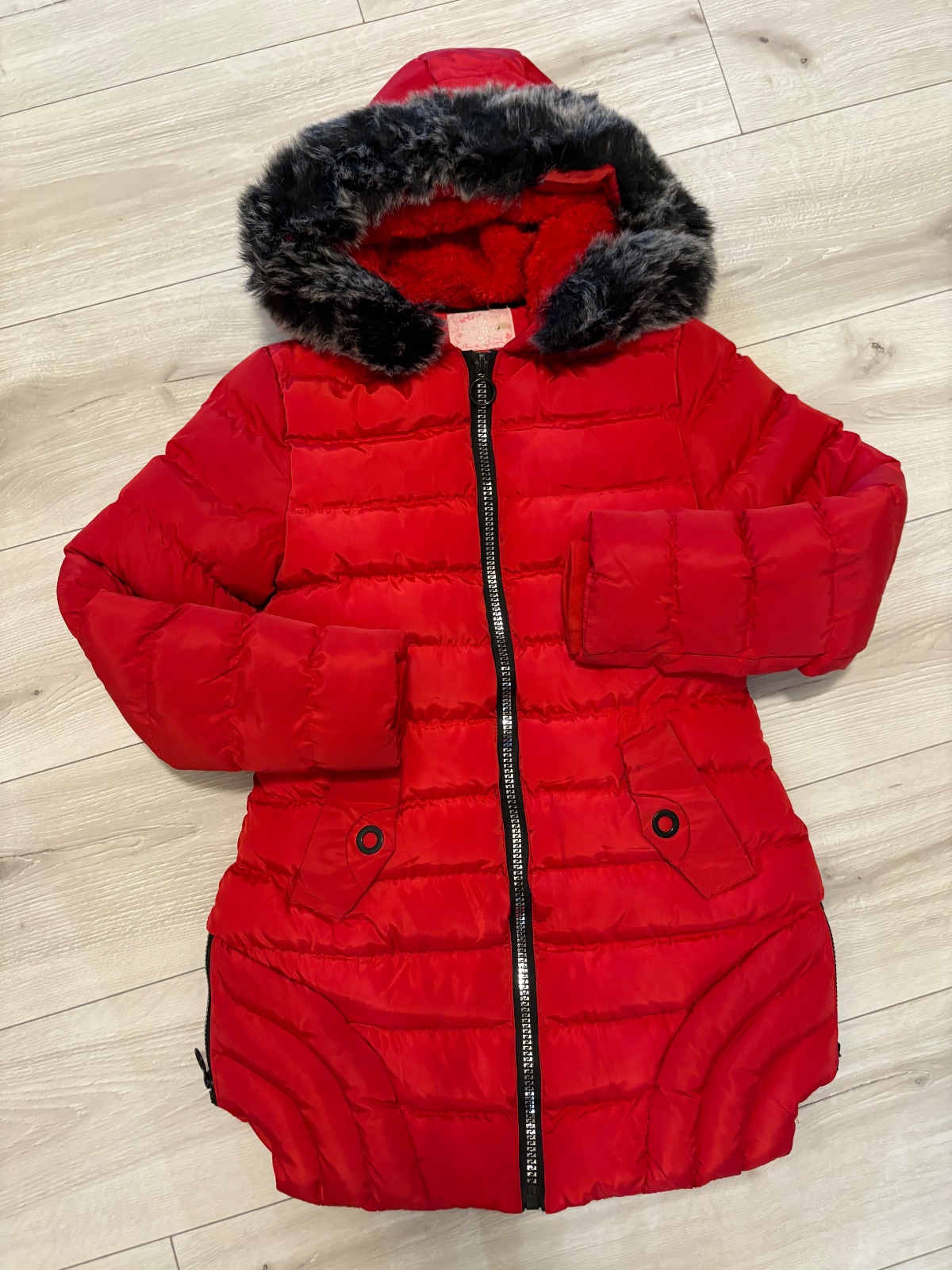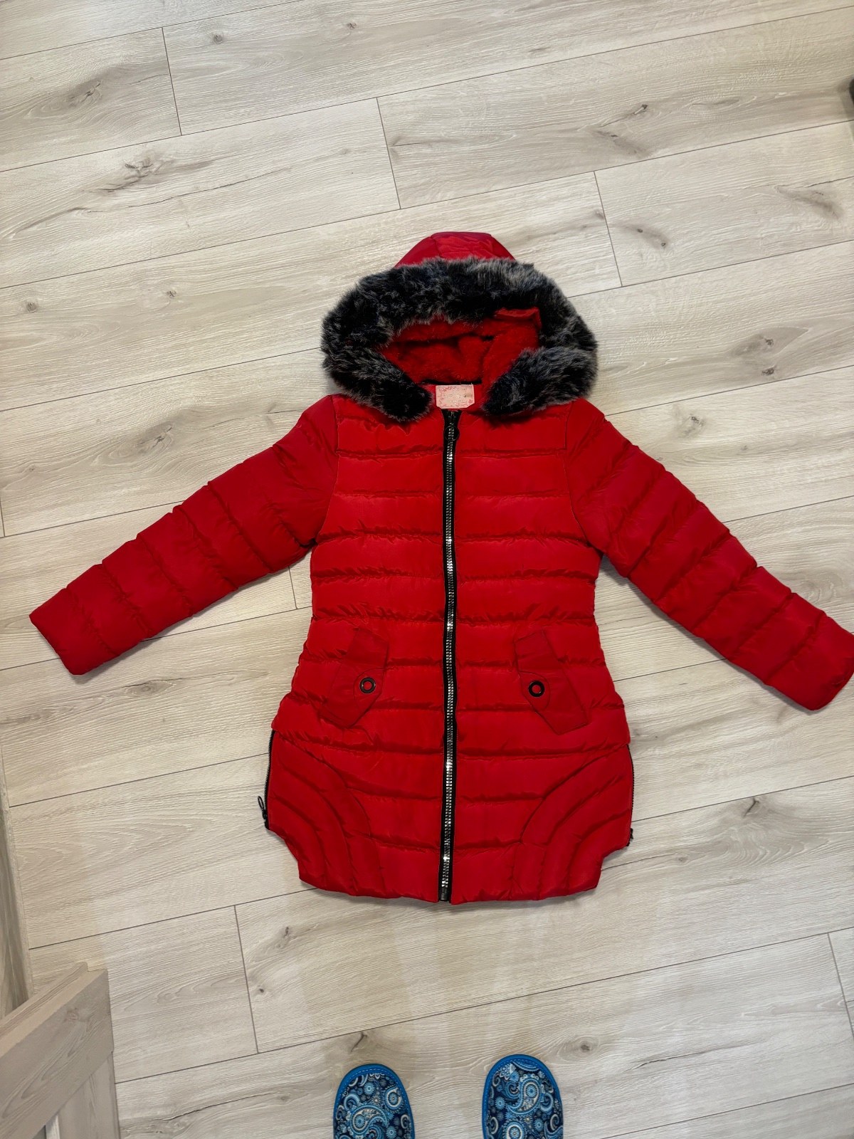 Kupovaná v Poľsku, nosená, veľmi teplá, zatiahnutia nemá, ale mini čierne fliačky pri ľavom vrecku, treba vyprať