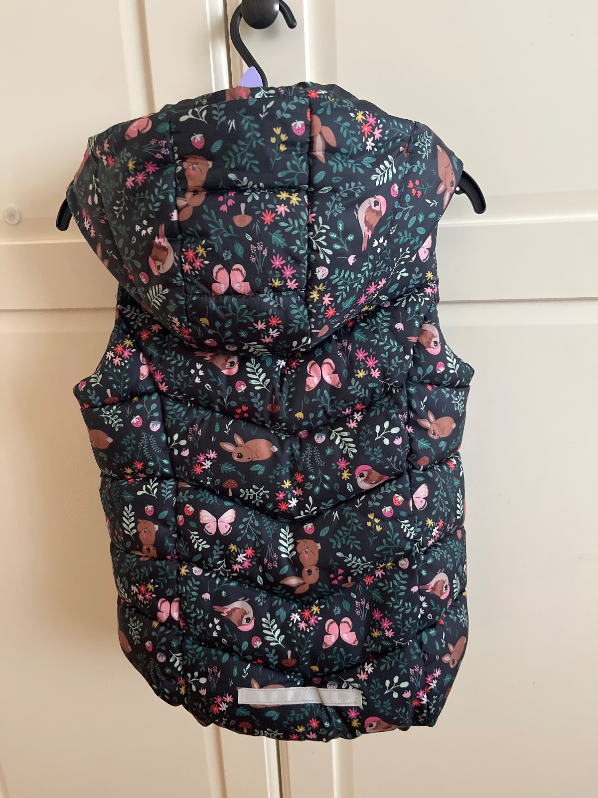 Vesta v top stave, nosena jednu sezonu, malá mi rýchlo vyrástla. Kapucňa sa dá dať dolu.