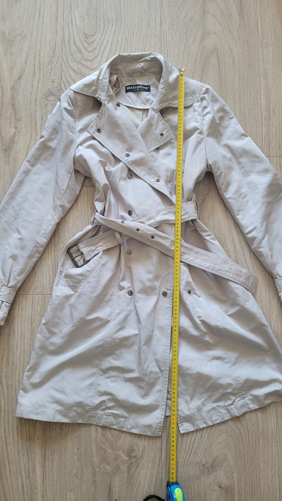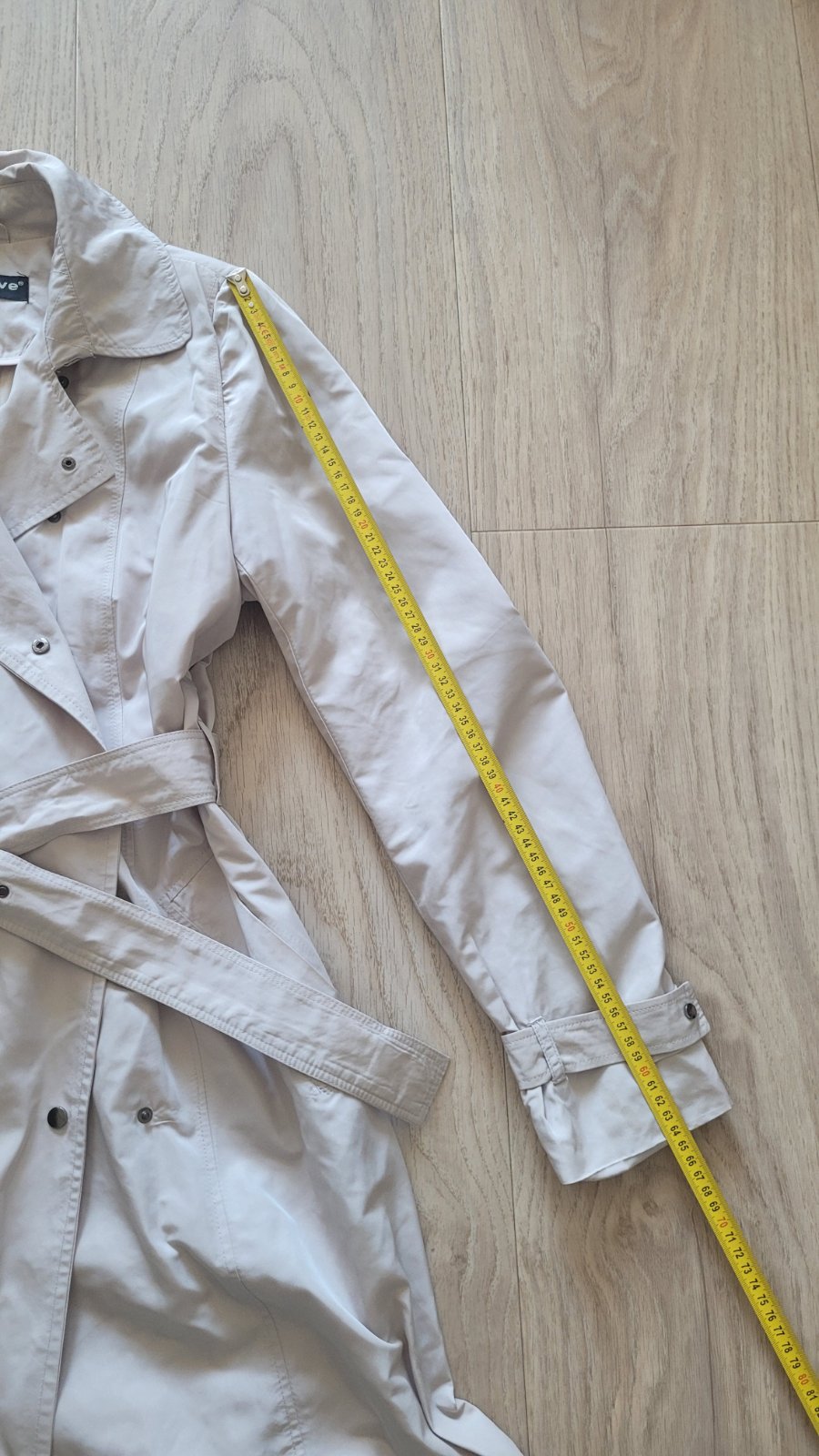 krátky béžový trenčkot 40 Rozmery: - hrudník: 53x2 cm - rukáv: 39+ cm - dĺžka: 73