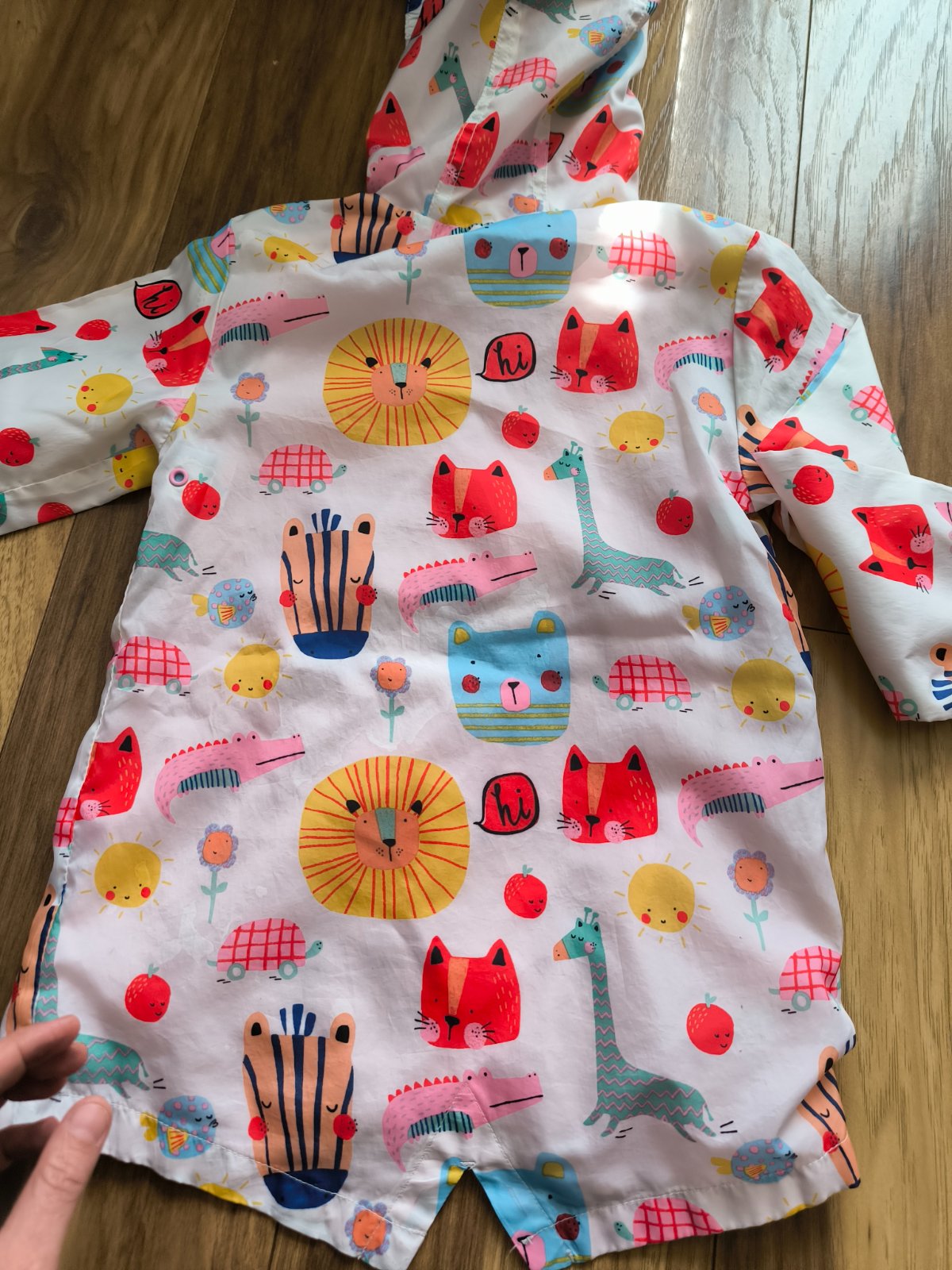 Krásna tenšia bundička vrch sustak ,ppdsita bavlnenú látkou .predĺžený strih ,má mini fliaciky inak veľmi pekná Pc bola 26 e