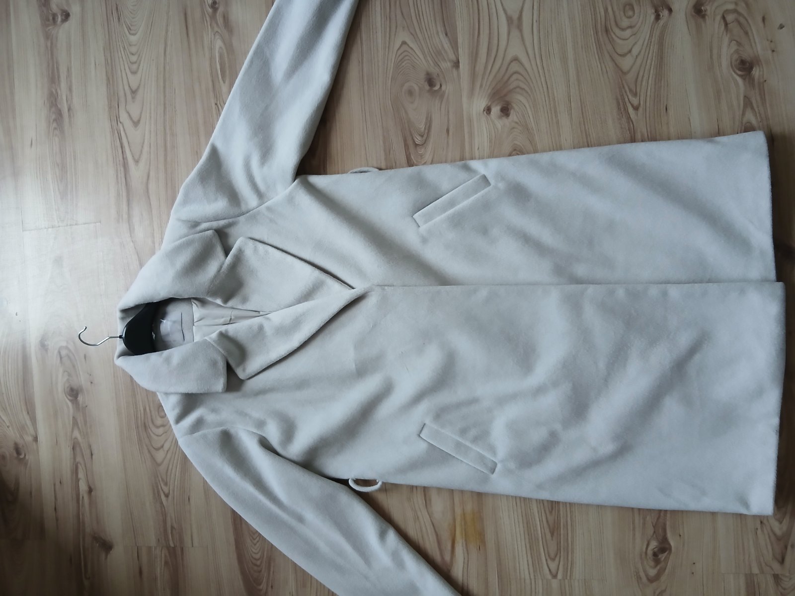 Kabát, nemáte opasok, taka krémová farba, po odskúšani skôr veľkosť 44