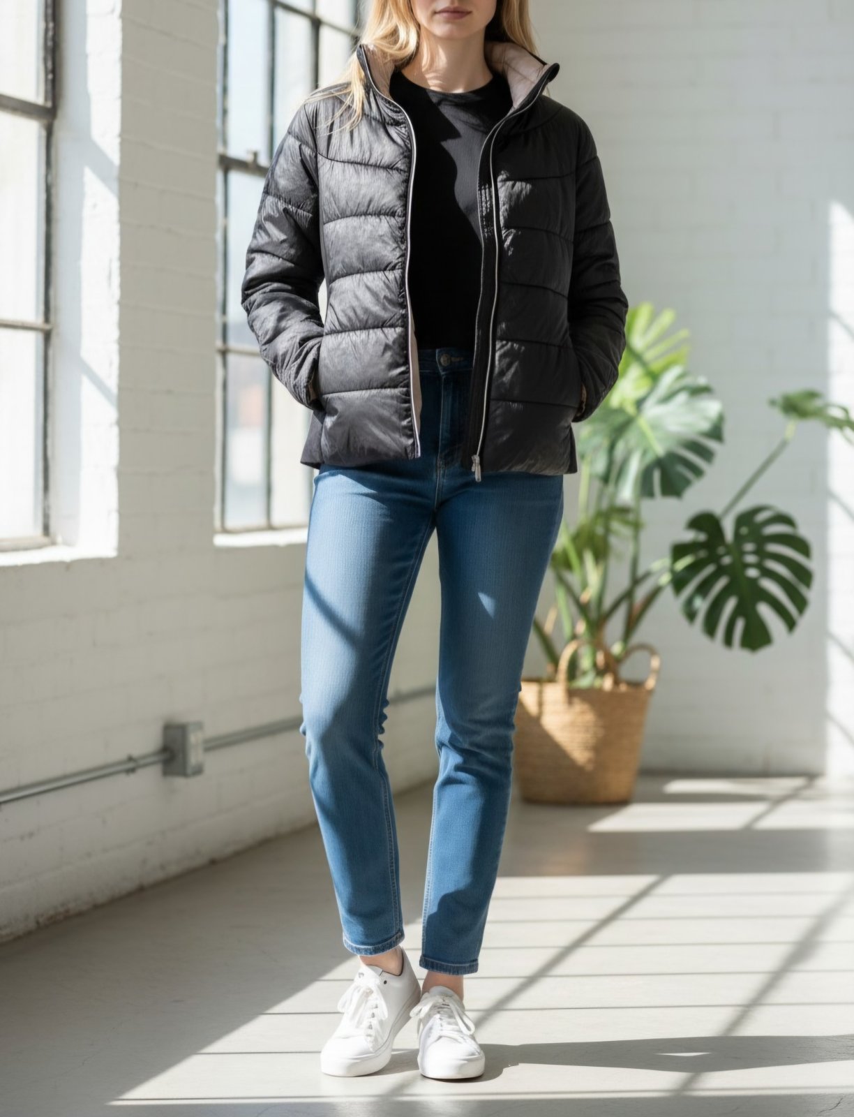 dámska čierna prechodná prešívaná bunda so stojačikom
