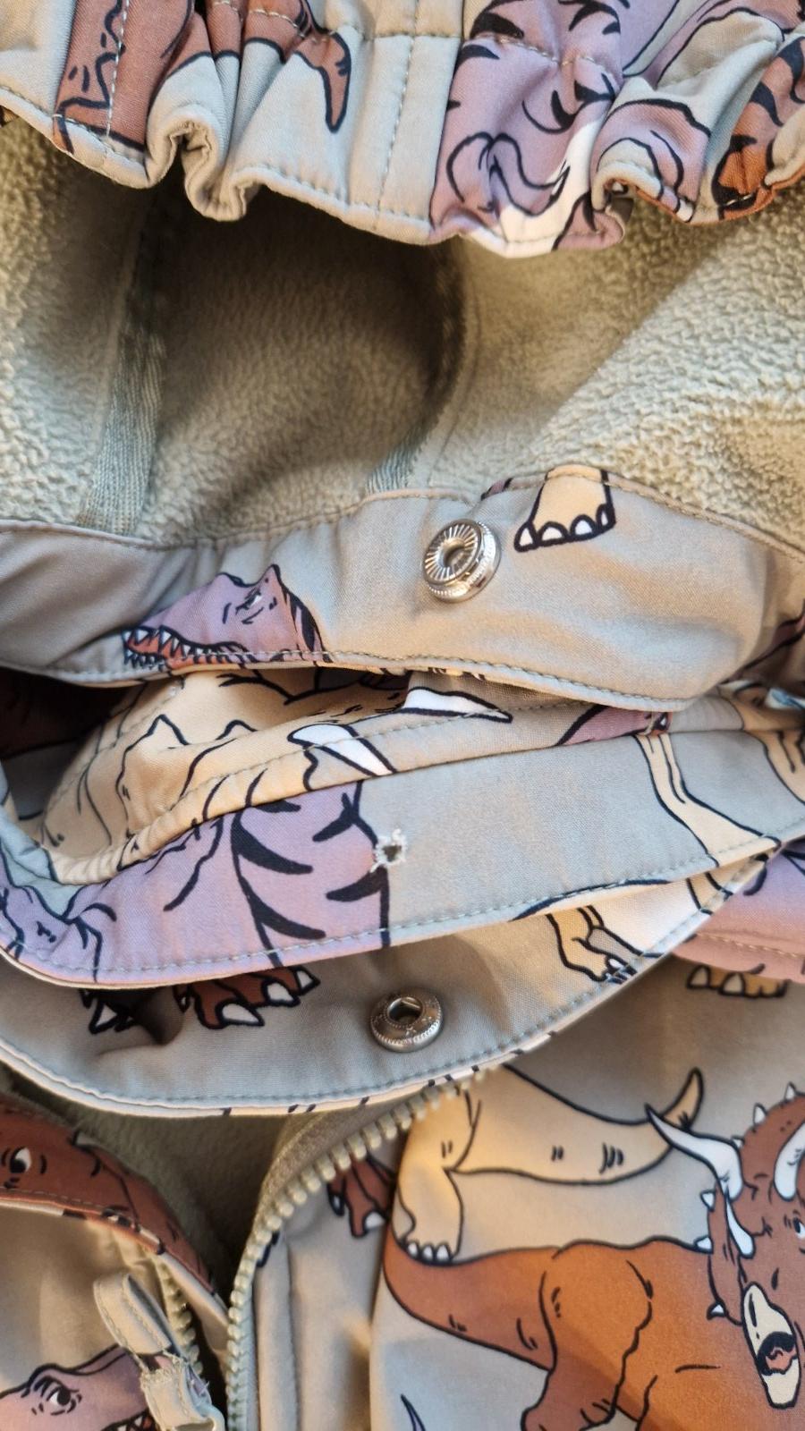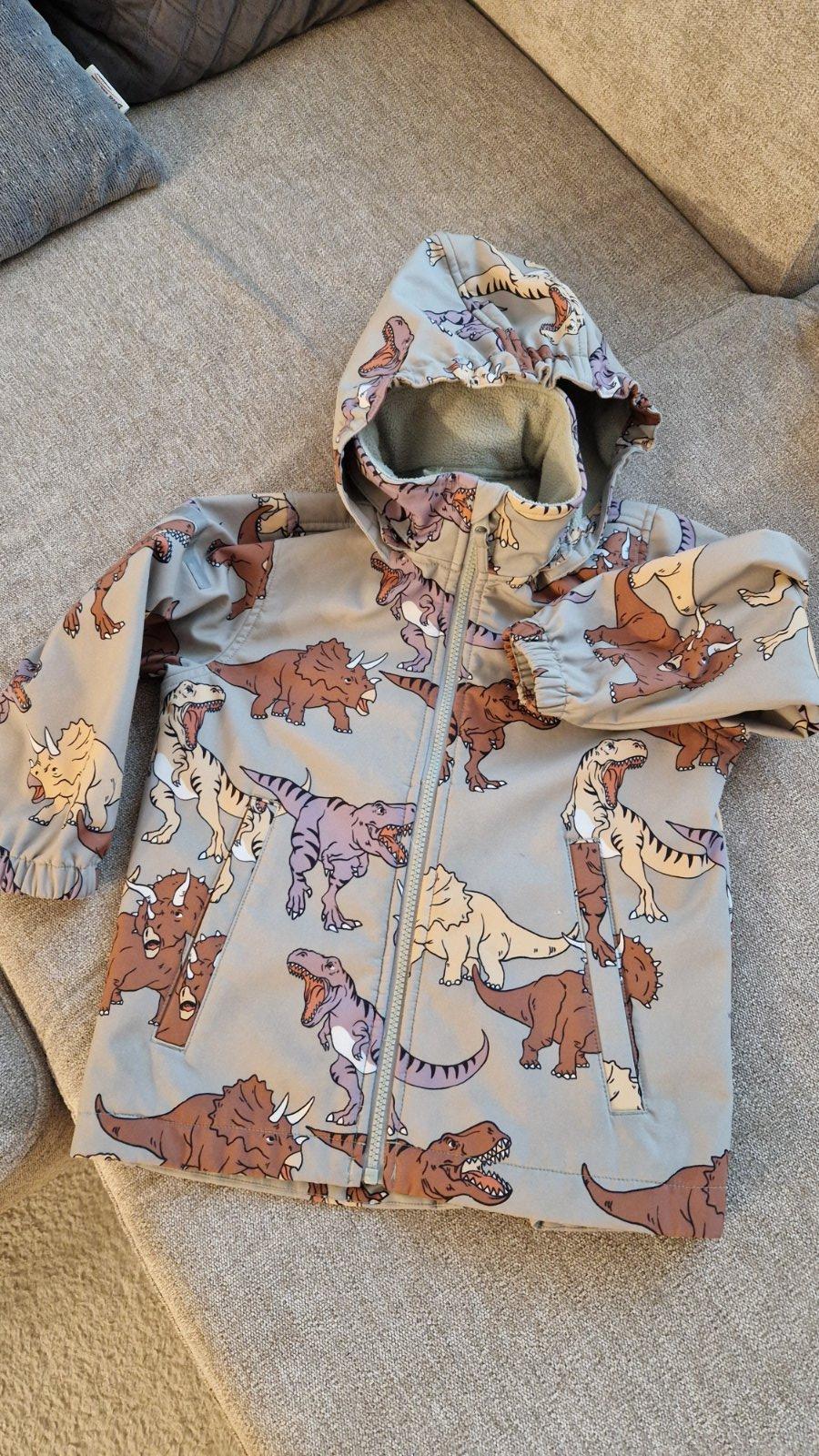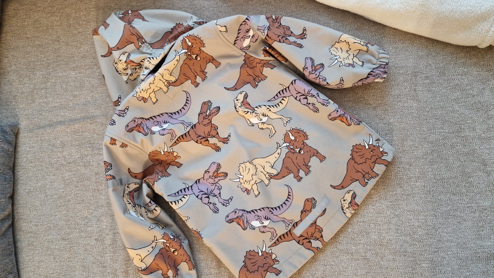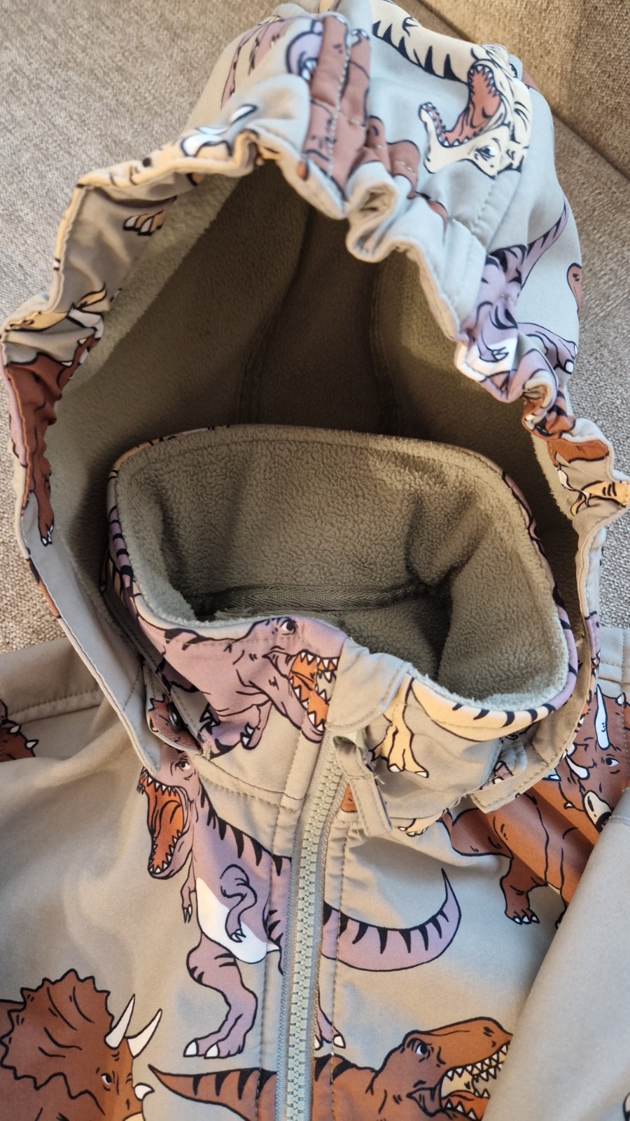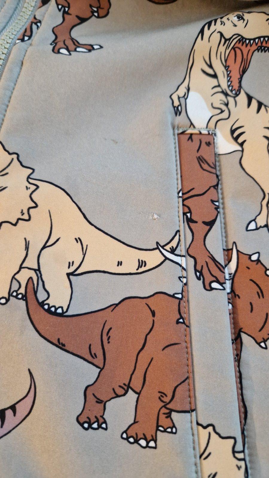 Perfektná funkčná bunda, nepremokavá, veľkosť píšu 116 ale odporúčam 110. Dino motív veľmi obľúbený, bundička má svoje nedostatky, na kapucni je vytrhnutý jeden cvok, čo by sa malo dať opraviť, pára sa úchytka a spredu pri vrecku je malý fliačik a zader, všetko nafotene a zohľadnené v cene.