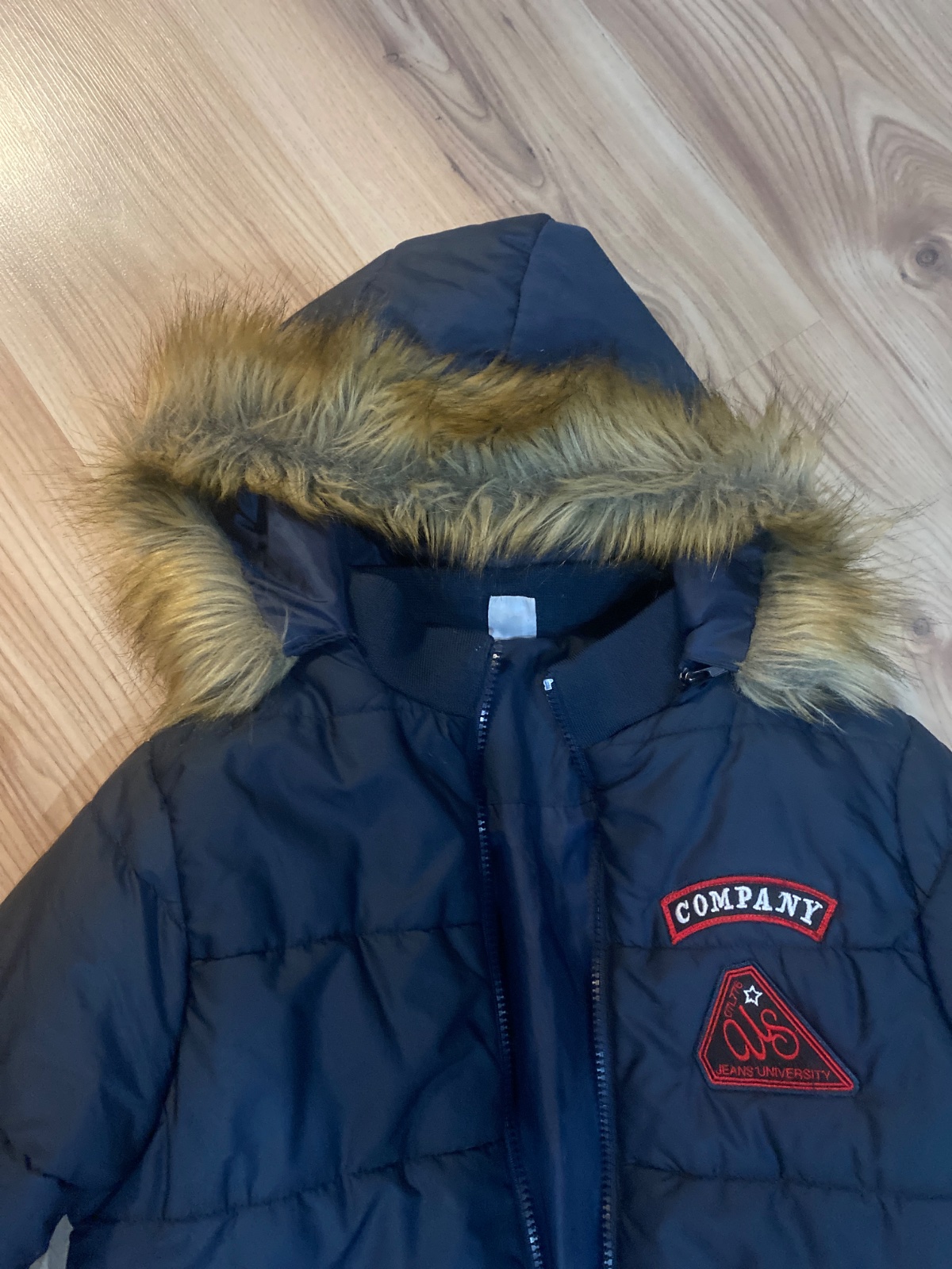 pekna zimna vetrovka s odnimatelnou kapucnou na 7-8rokov