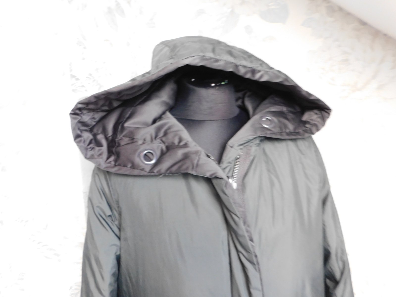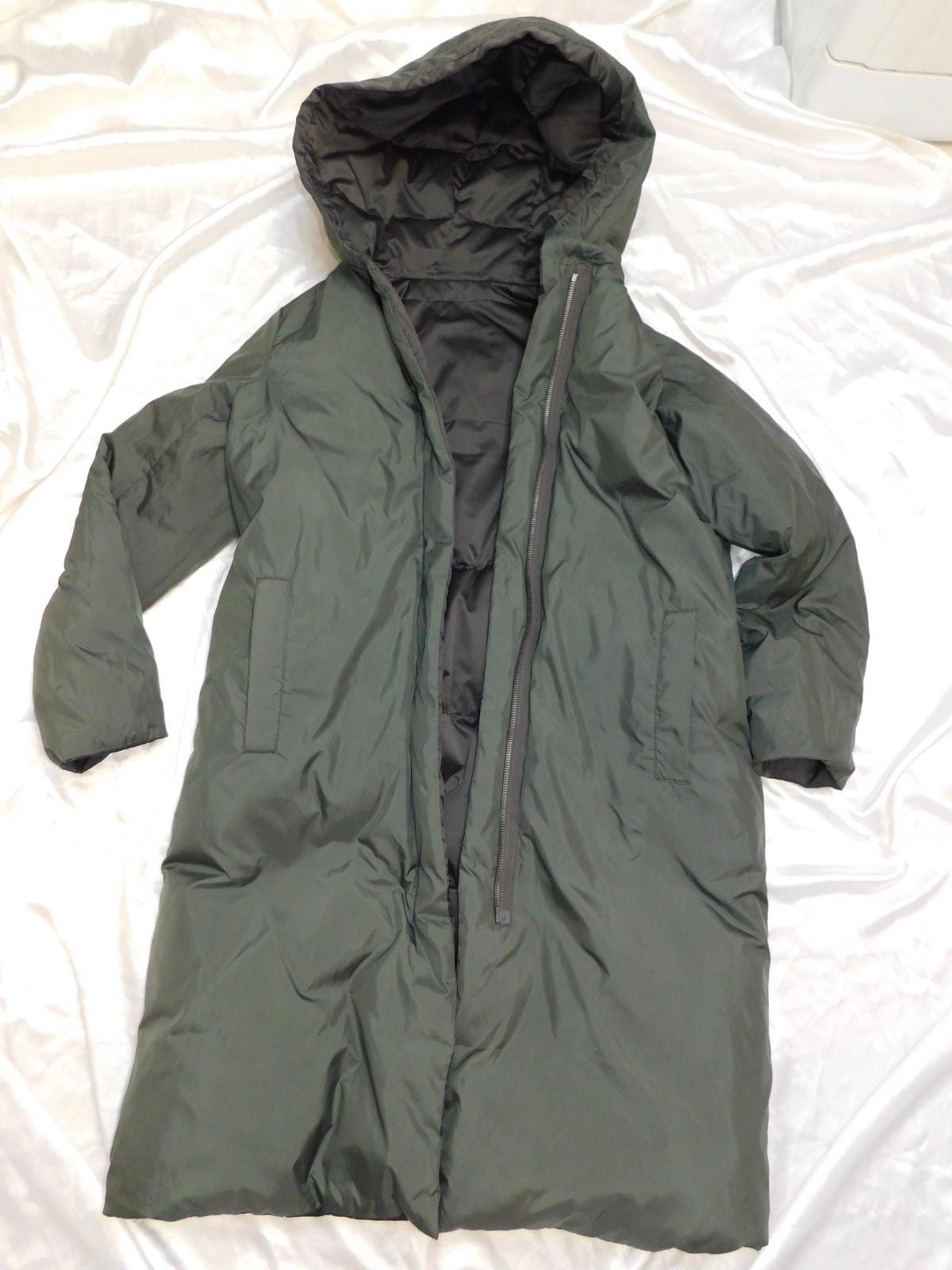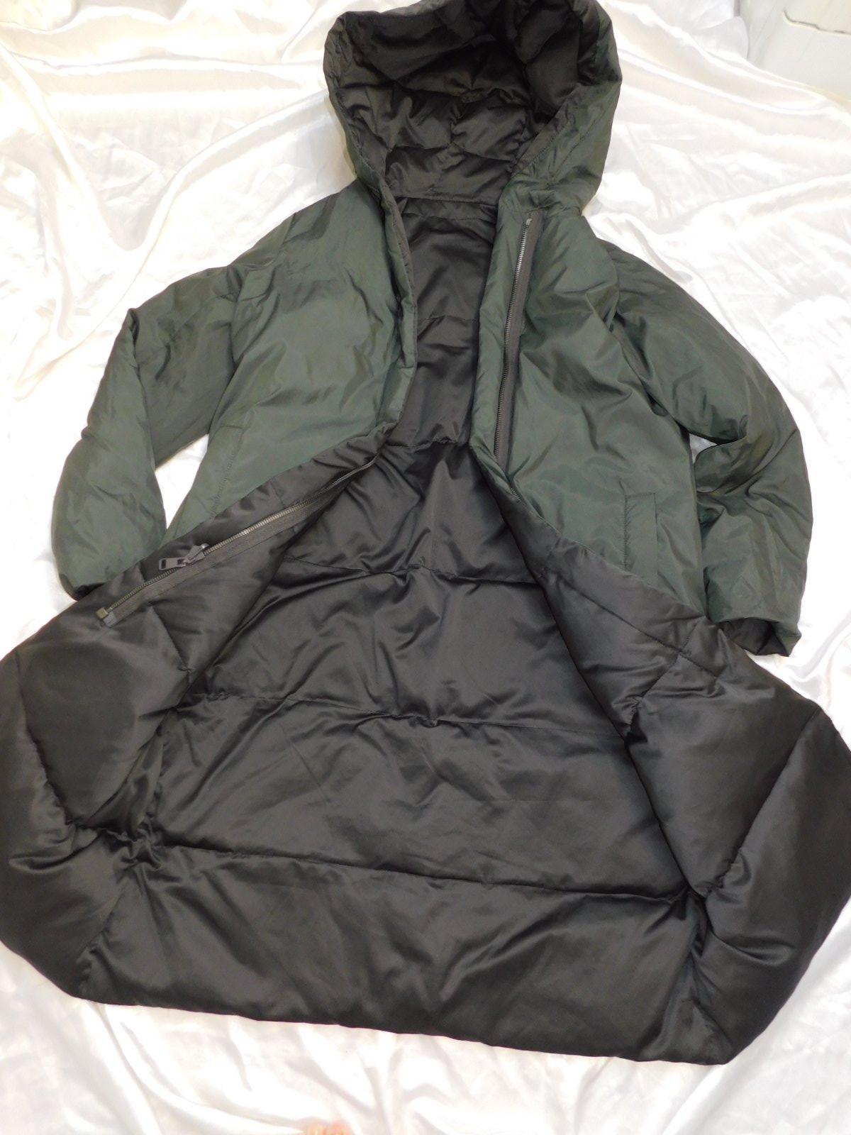 ZARA Dlha paperova obojstranna bunda s kapucnou tmavokhakiolivovej farby,zapinanie na zips.super stav.PC 85€. b53