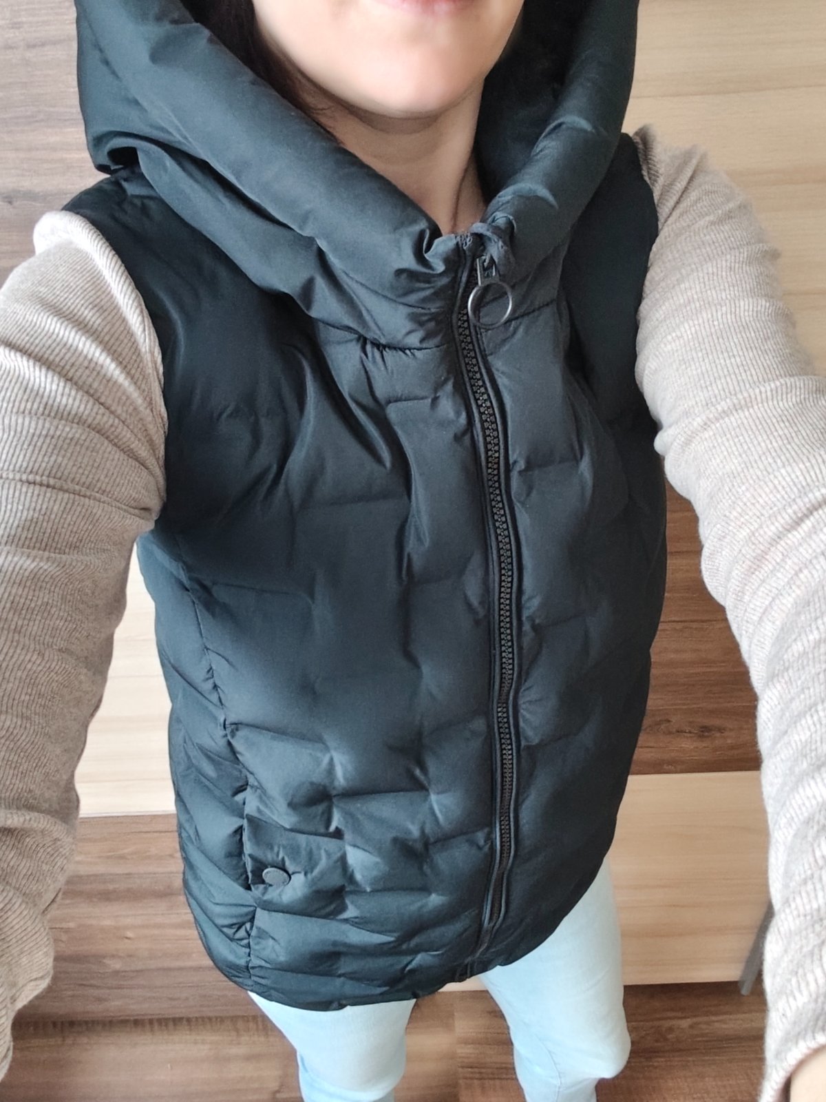 Posuniem teplú čiernu nepremokavú vestu, nebola nikdy oblečená von.