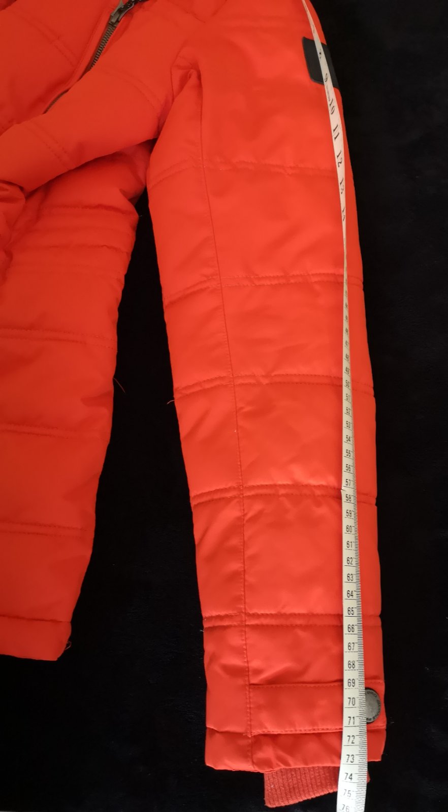 Výborný stav, bez poškodenia, teplá, ale nie veľmi hrubá, dĺžka 72 cm, šírka 2 x 51 cm, rukáv od krku 10 + 65 cm, vnútorná dĺžka rukáva 51 cm