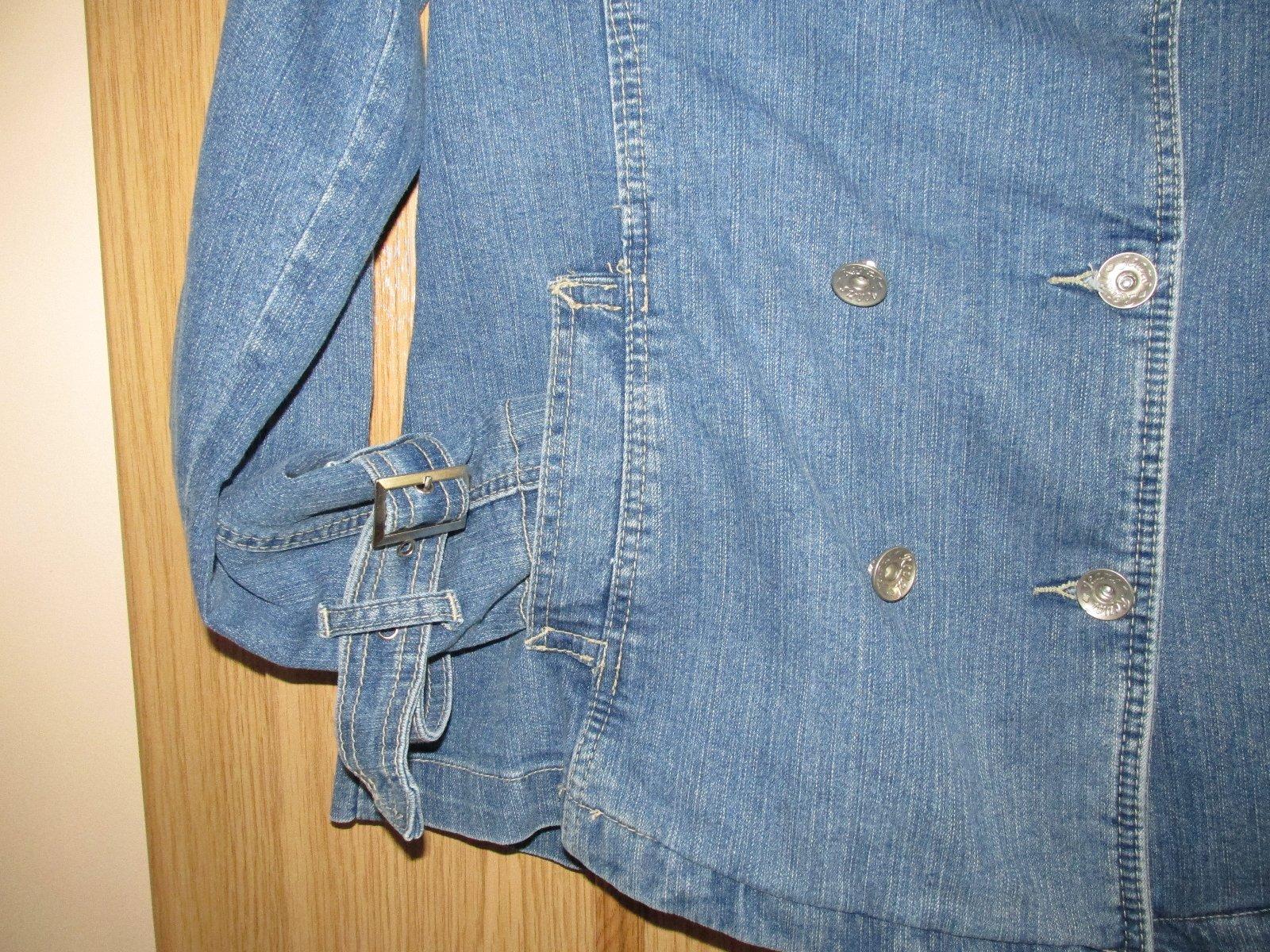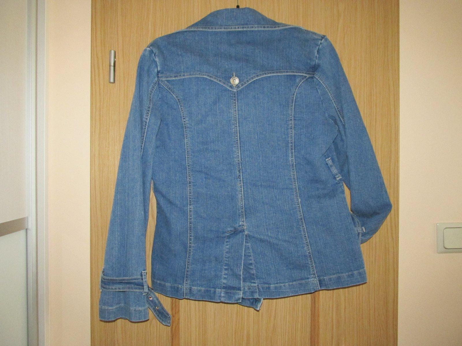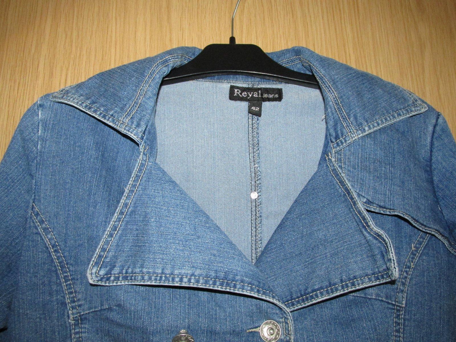 Predám dvojradové sako na kovové gombíky, značka Reyal Jeans, po bokoch má vrecká, nepodšité, mäkká riflovina. Rozmery sú nasledovné - šírka popod paže je 53 x 2 cm, 67 cm je celková dĺžka - merala som cez stred chrbta, bez límca.