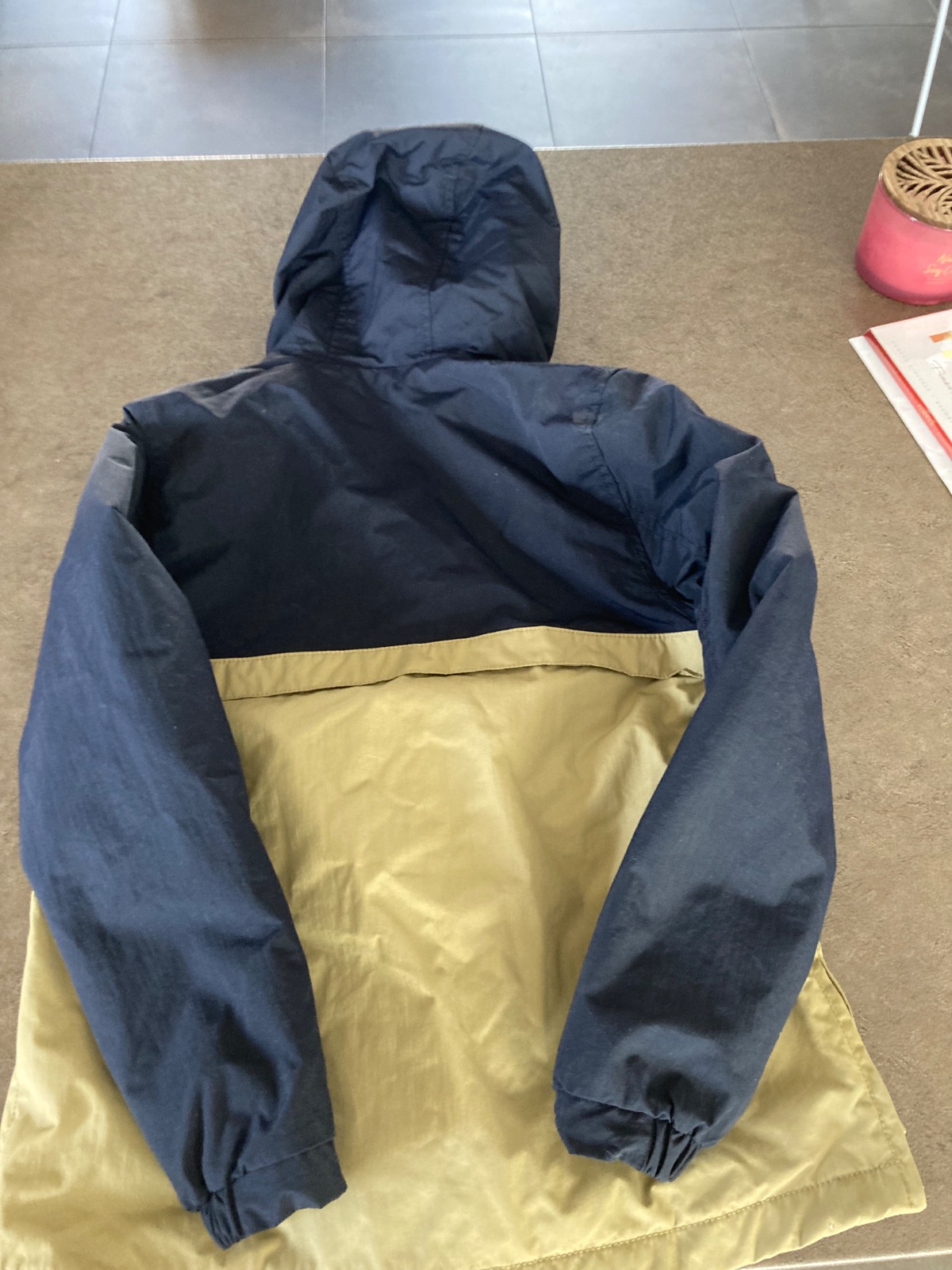Kabát je bez poškodenia, je zateplený, kľudne aj na miernu zimu, povrch pogumovaný, vhodný aj do dažďa