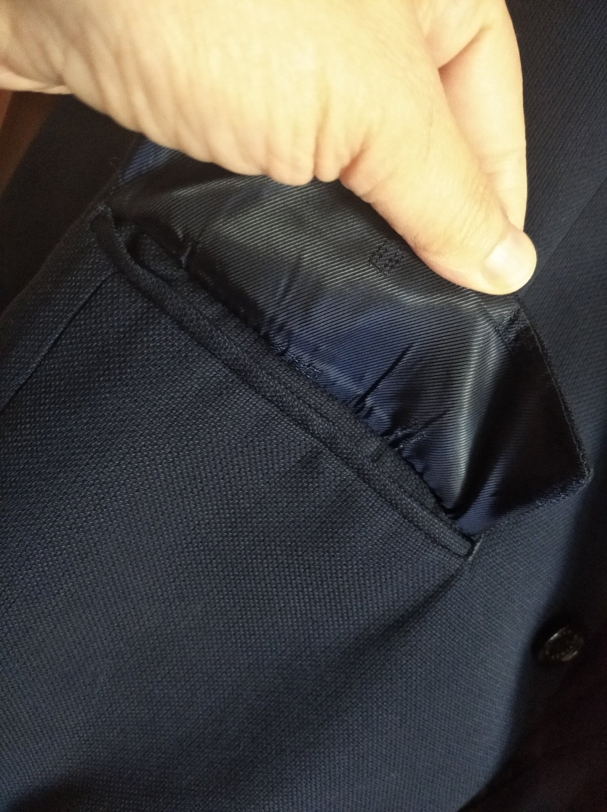 Prekrásne, štýlový, nadčasové vo výbornom stave bez známok nosenia, vrecká ešte zašité, oblečené, príležitostne párkrát