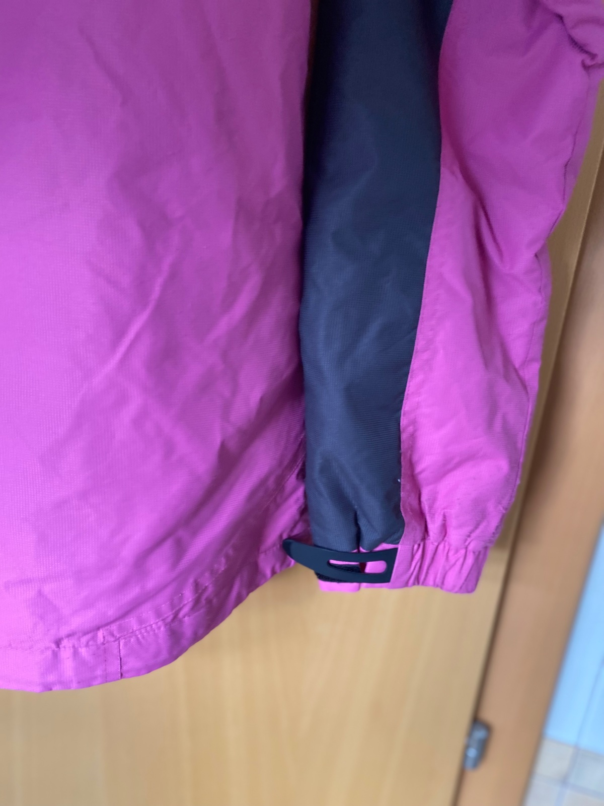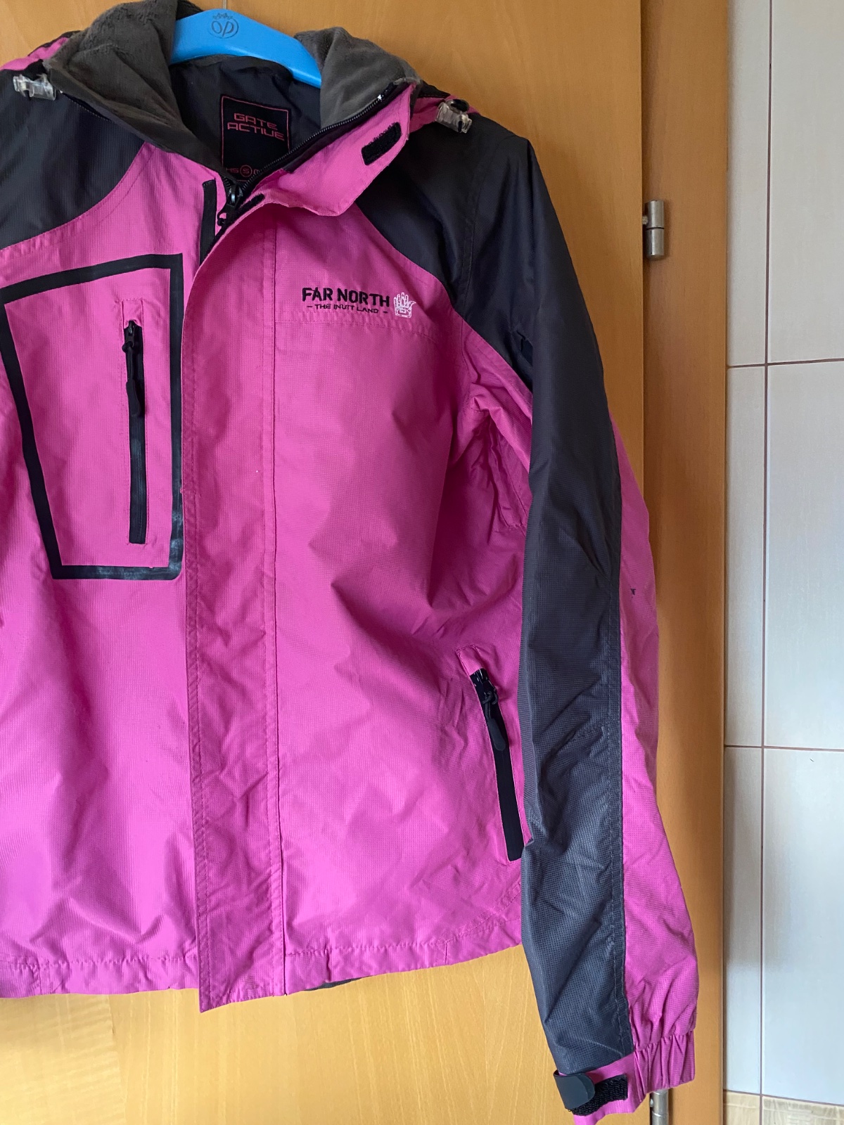 Tepla, ale nie je veľmi hrubá, ma lyžiarsky pas, 2 vnútorne vrecka na zips, dlzka 67cm, odopinajuca kapucňu, okolo krku z vnútornej strany teply flis