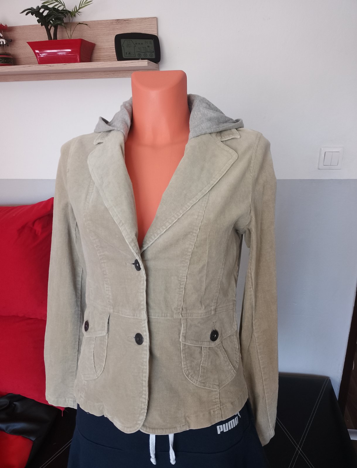 Menčestrové sako s kapucňou.