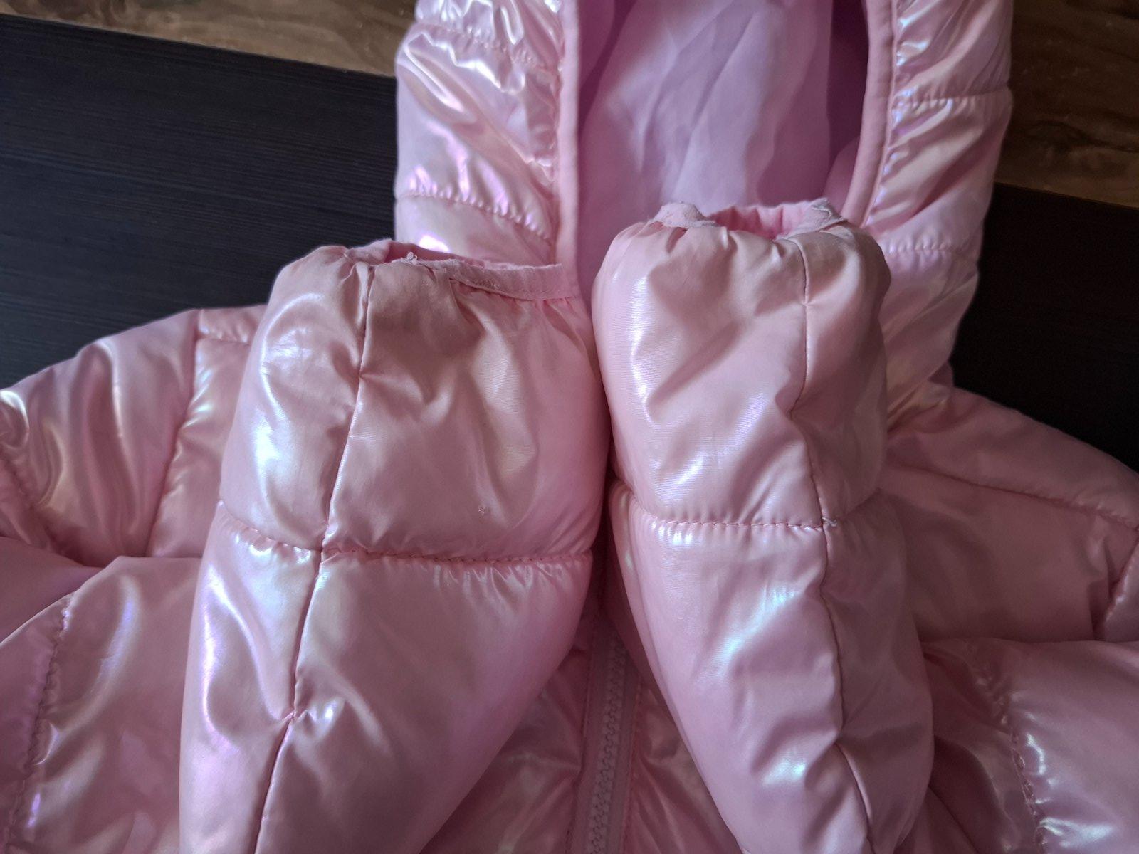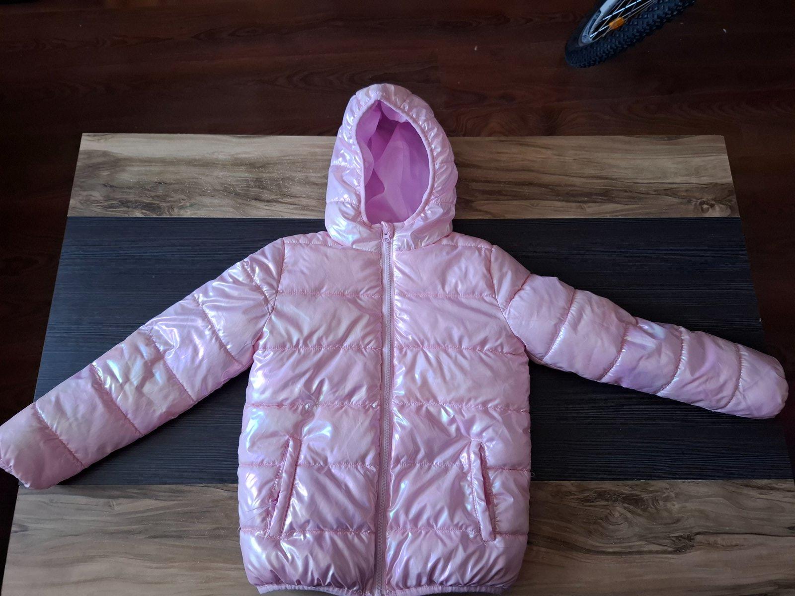 Ponúkam na predaj peknú bundu po dcérke, kupovaná nová, nosená na striedačku s inou bundou. Farba je taká pekná perleťová ružová.