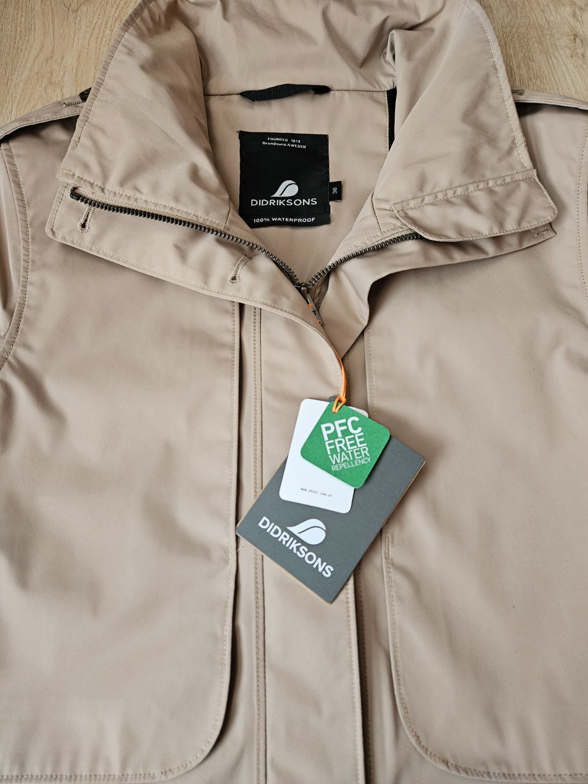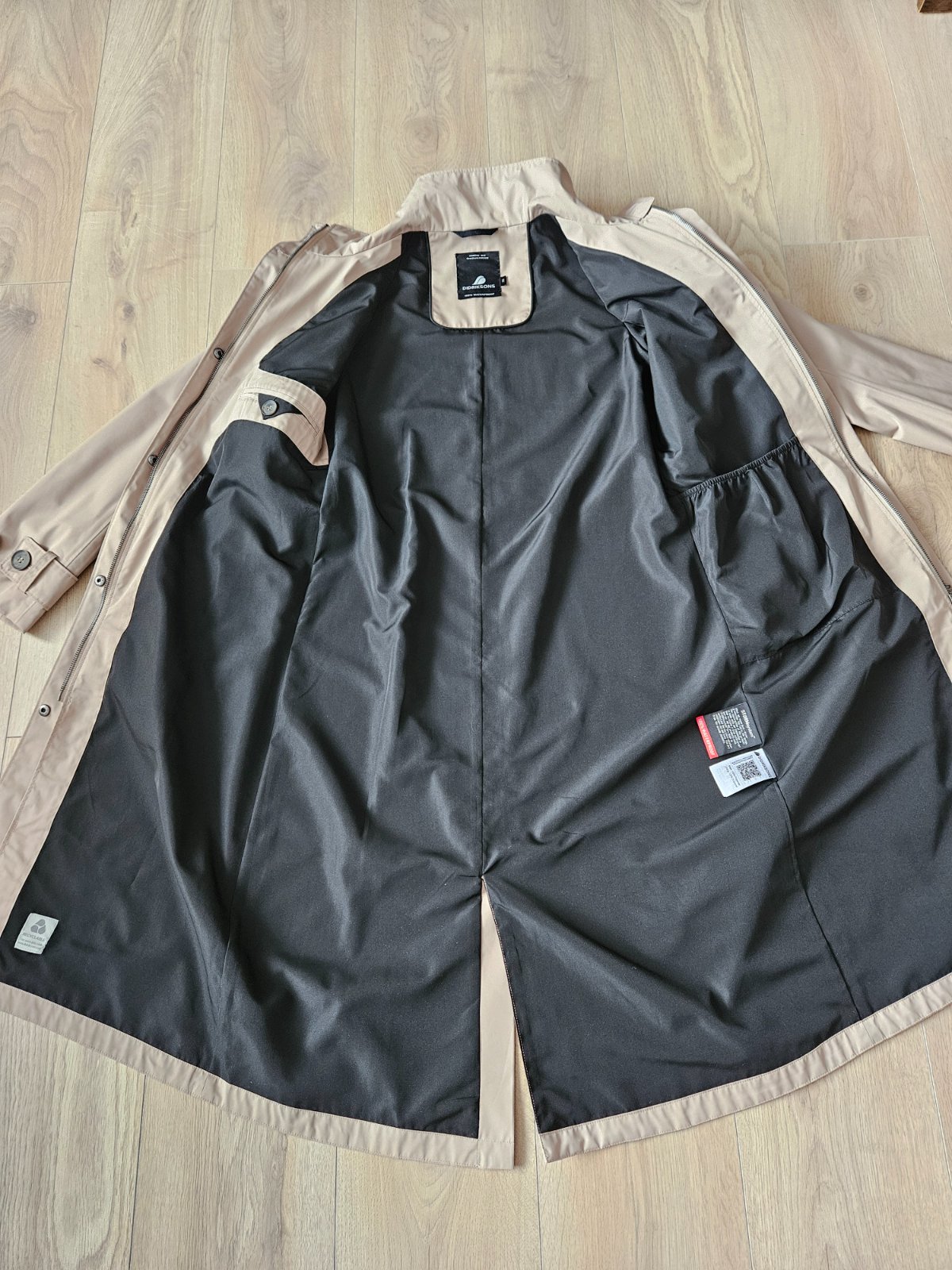 SkladomPerfektný 100% nepremokavý a vetruodolný trenčkot švédskej značky Didriksons (Didriksons 1913), ktorá sa špecializuje na výrobu funkčného nepremokavého oblečenia. Mám od nich zopár búnd a všetky spĺňajú to čo deklarujú.