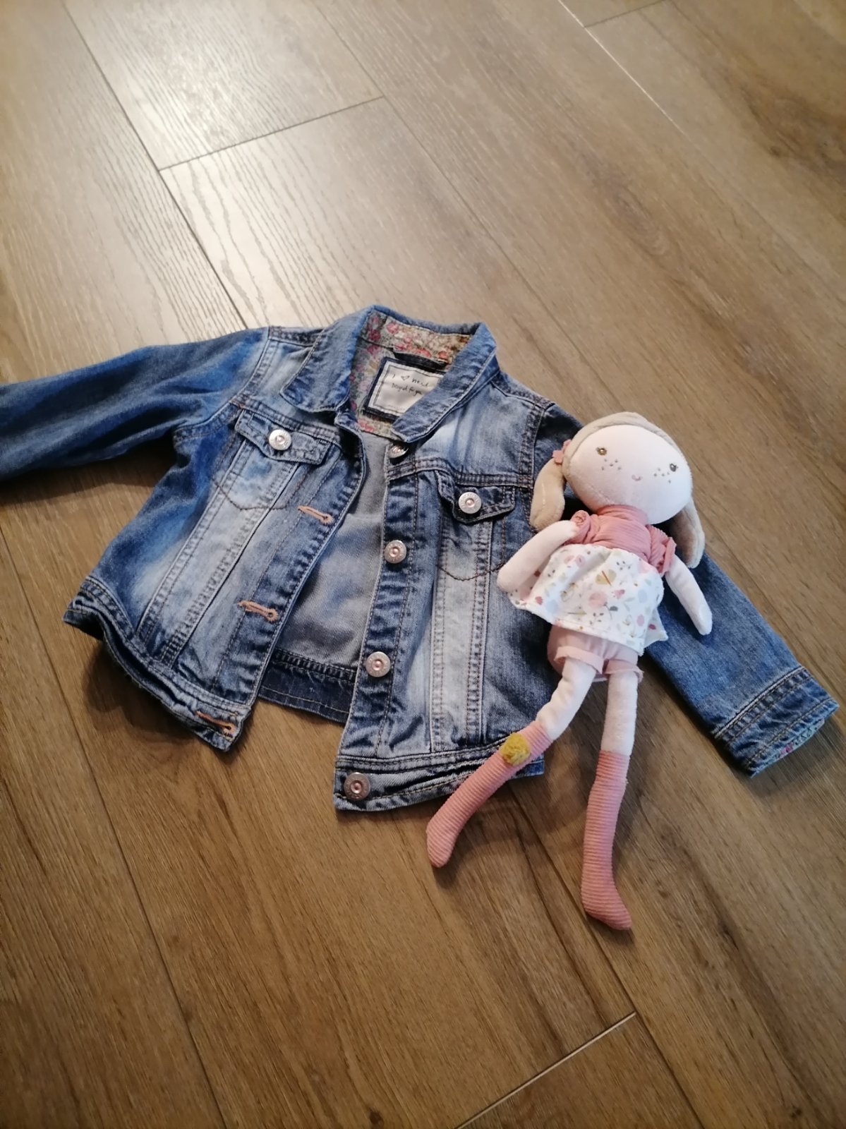 Predám dievčenskú rifľovú bundu 12-18 mesiacov Dĺžka zapínania cca 28cm Chrbát cca 30cm Rukáv 30cm a 22 cm