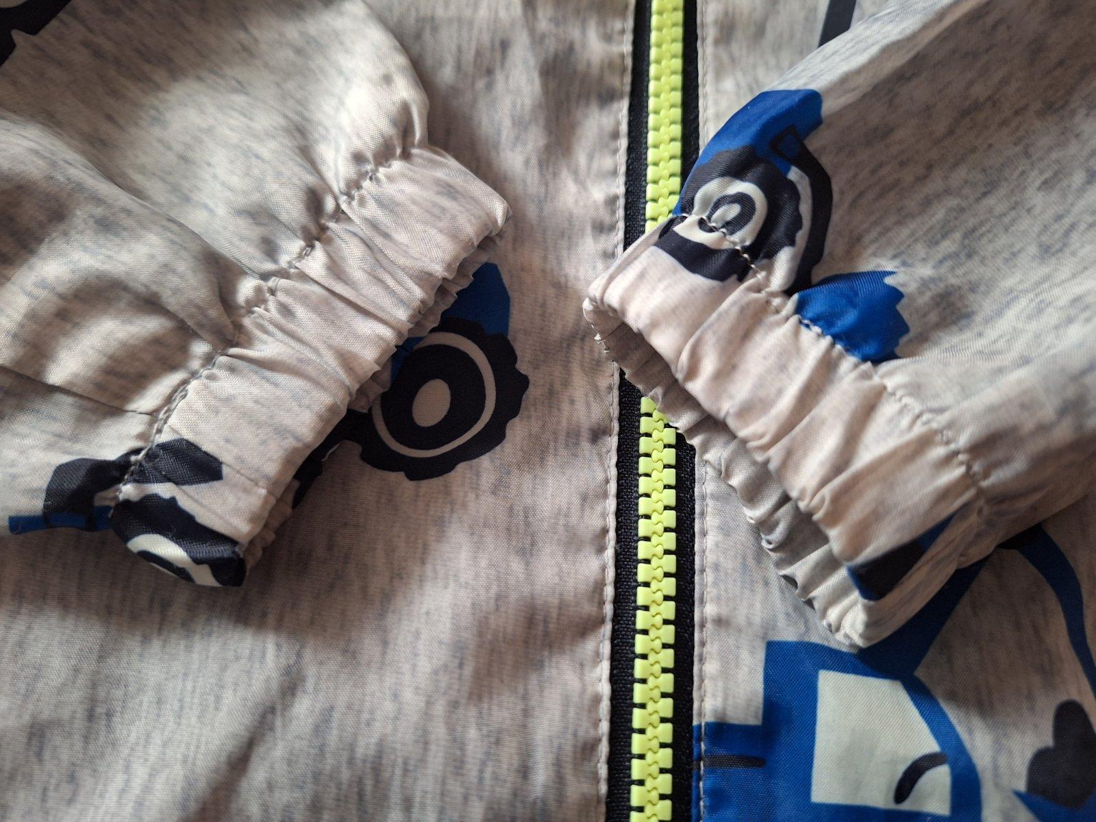 Podšitá flísom (okrem rukávov), v dobrom nosenom stave, jediná chybička - rožky reflexného prvku sa málinko odliepajú.